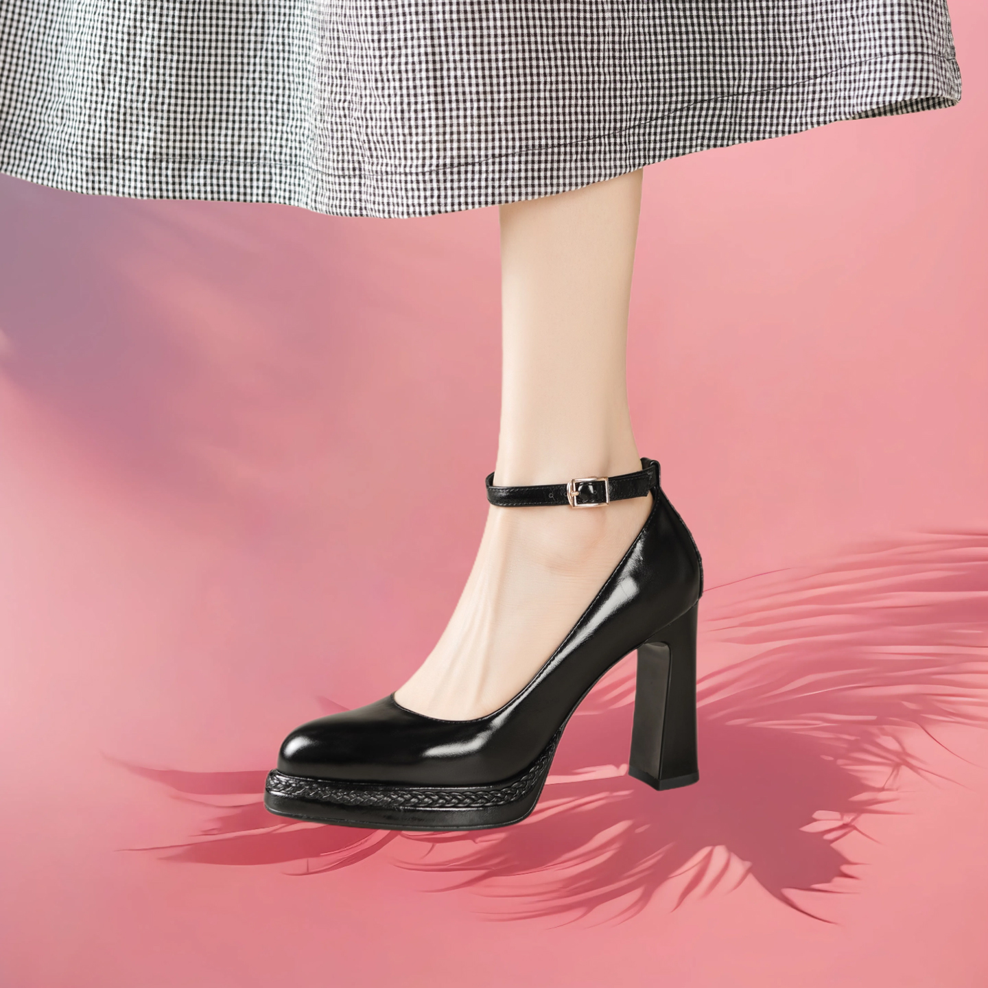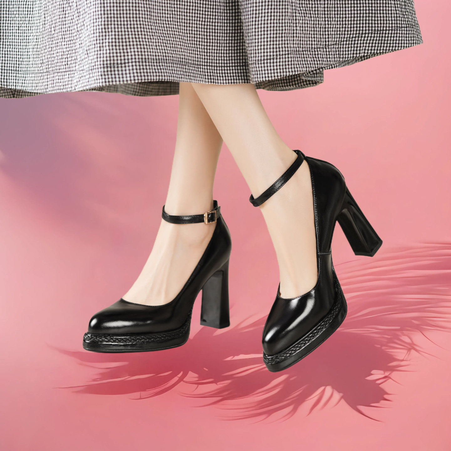 仙女风瓢鞋 秋季 浅口百搭中跟奶奶鞋 大码 真皮单鞋 女鞋 粗跟2025新款