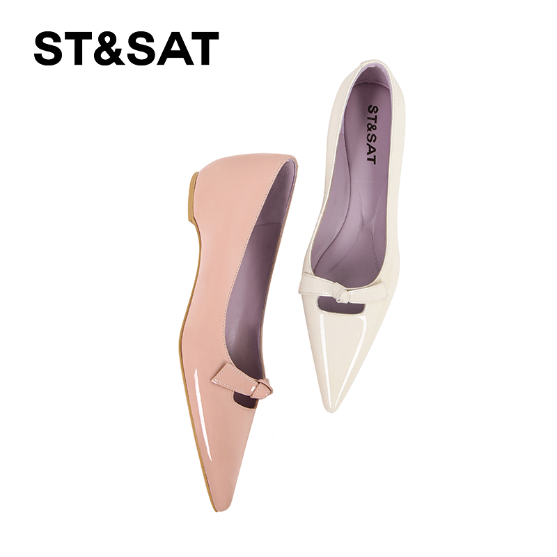 蝴蝶结通勤平底鞋 星期六白色仙女风单鞋 女2025年真皮尖头浅口女鞋