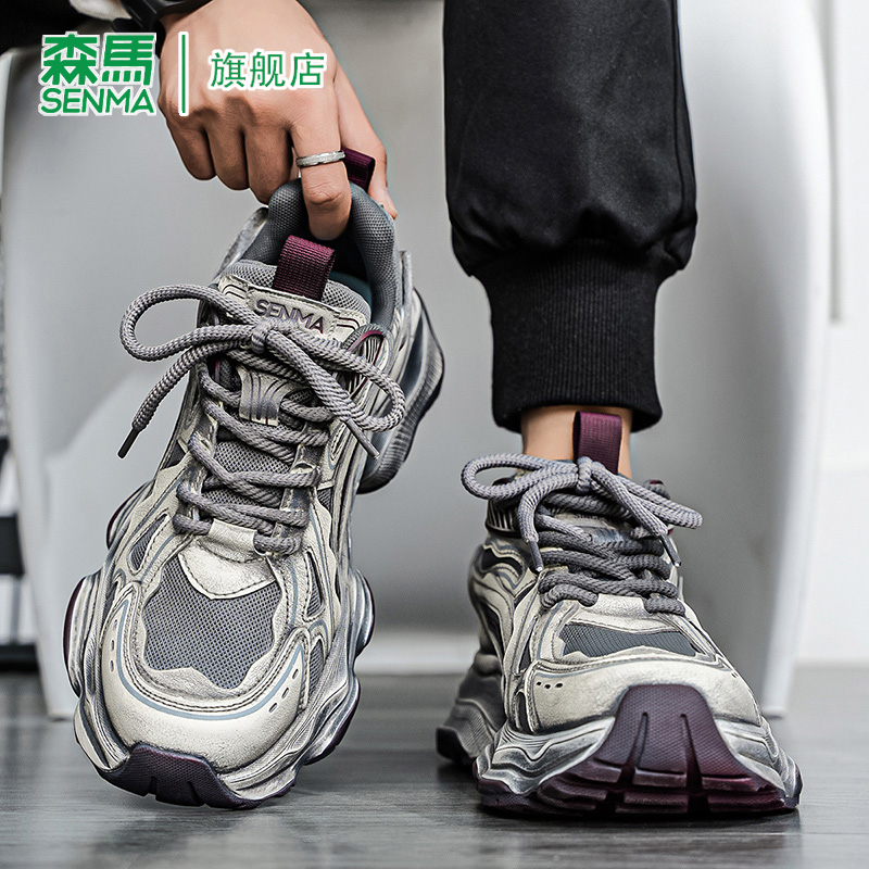 青少年厚底低帮老爹潮鞋 森马男鞋 复古潮流休闲运动鞋 秋季 2025新款