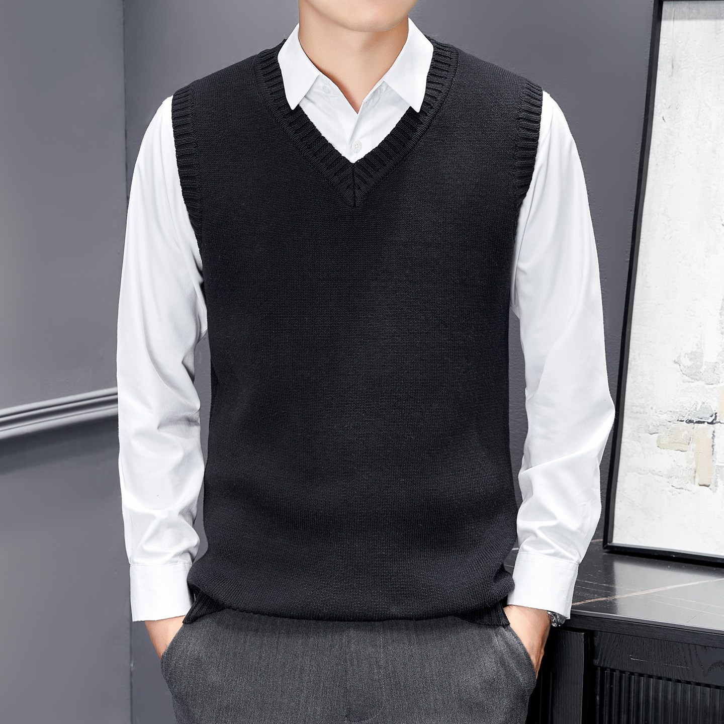 背心针织衫 毛衣马甲加绒加厚保暖V领坎肩无袖 潮 男士 2025秋冬新款