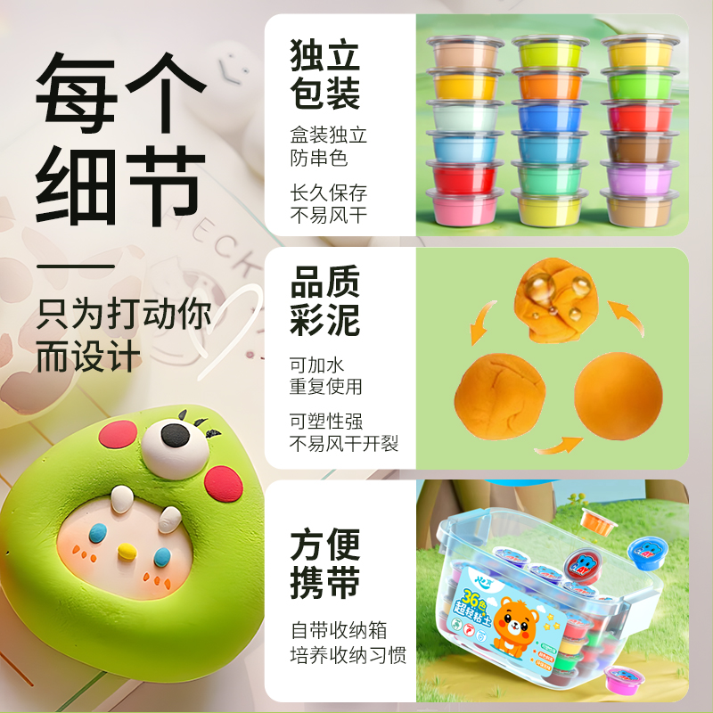 超轻粘土儿童安全彩泥橡皮泥小学生专用食品级无毒不粘手黏土玩具