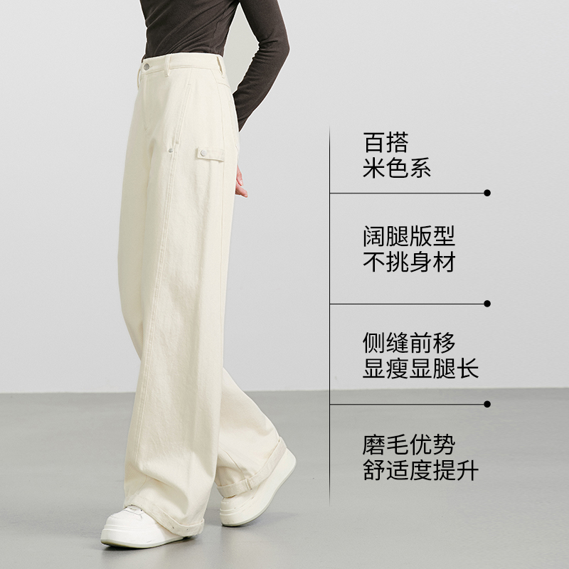 高腰百搭直筒阔腿裤 Called 新款 女2025秋季 Back双腰头原色牛仔裤