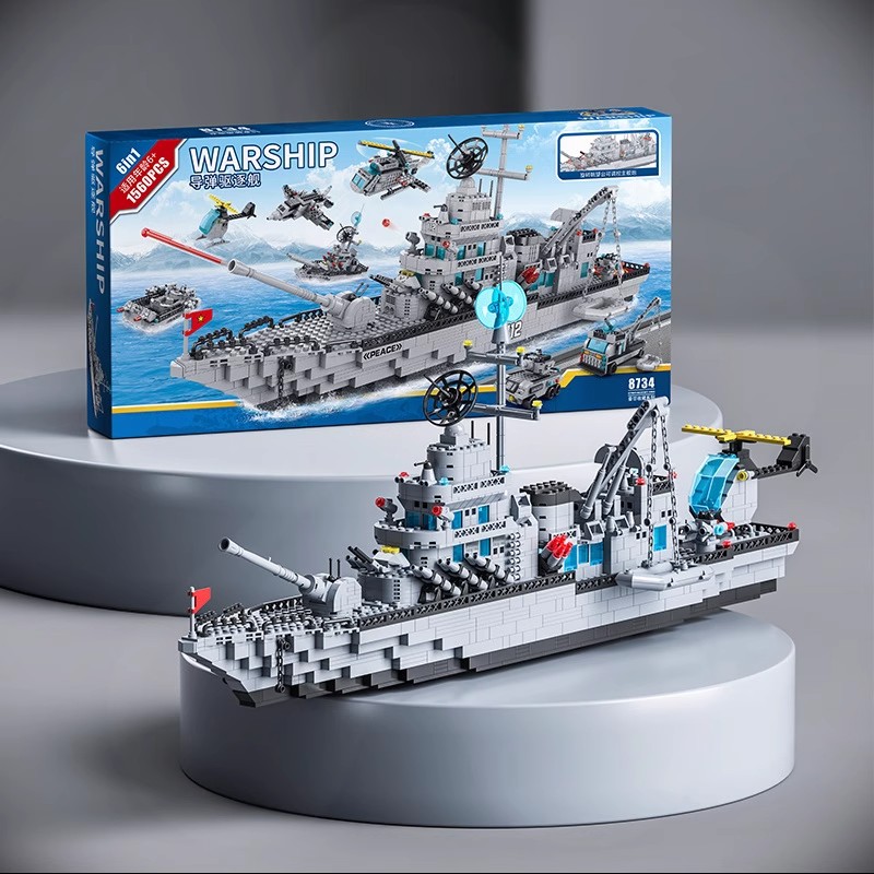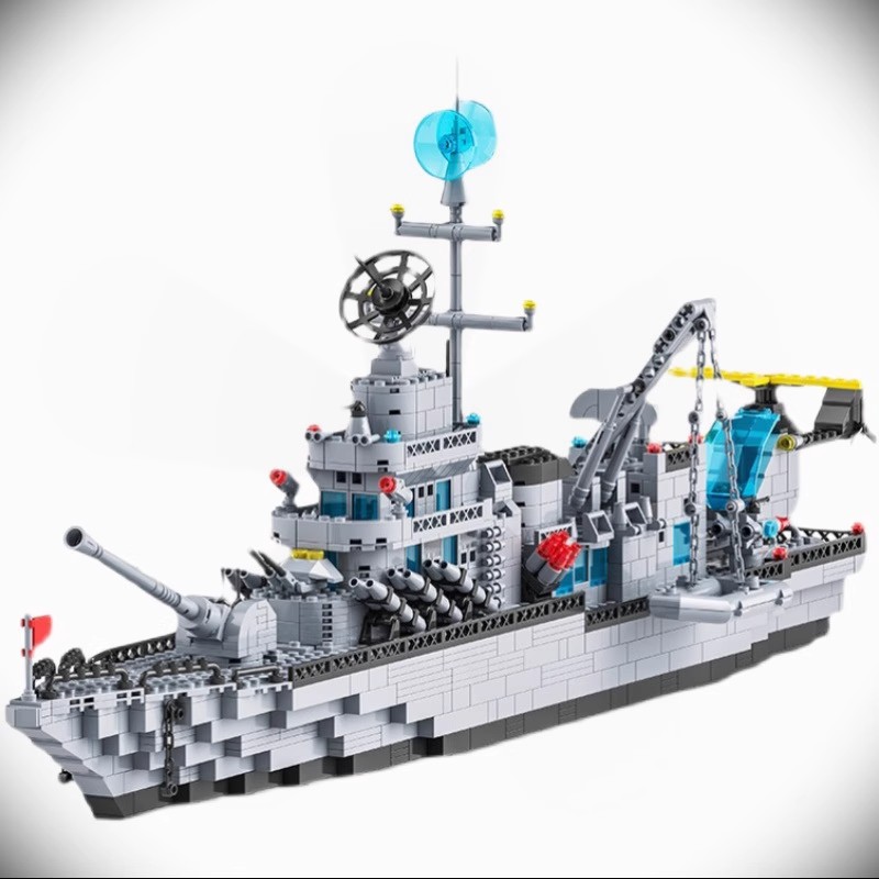 儿童益智玩具积木拼装 航空母舰军事模型男孩军舰拼图大型轮船男童