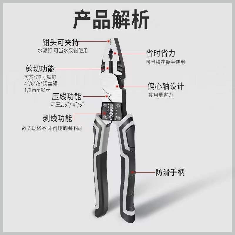 多功能9寸钢丝钳子省力老虎钳家用工业级尖嘴钳剥线高硬度