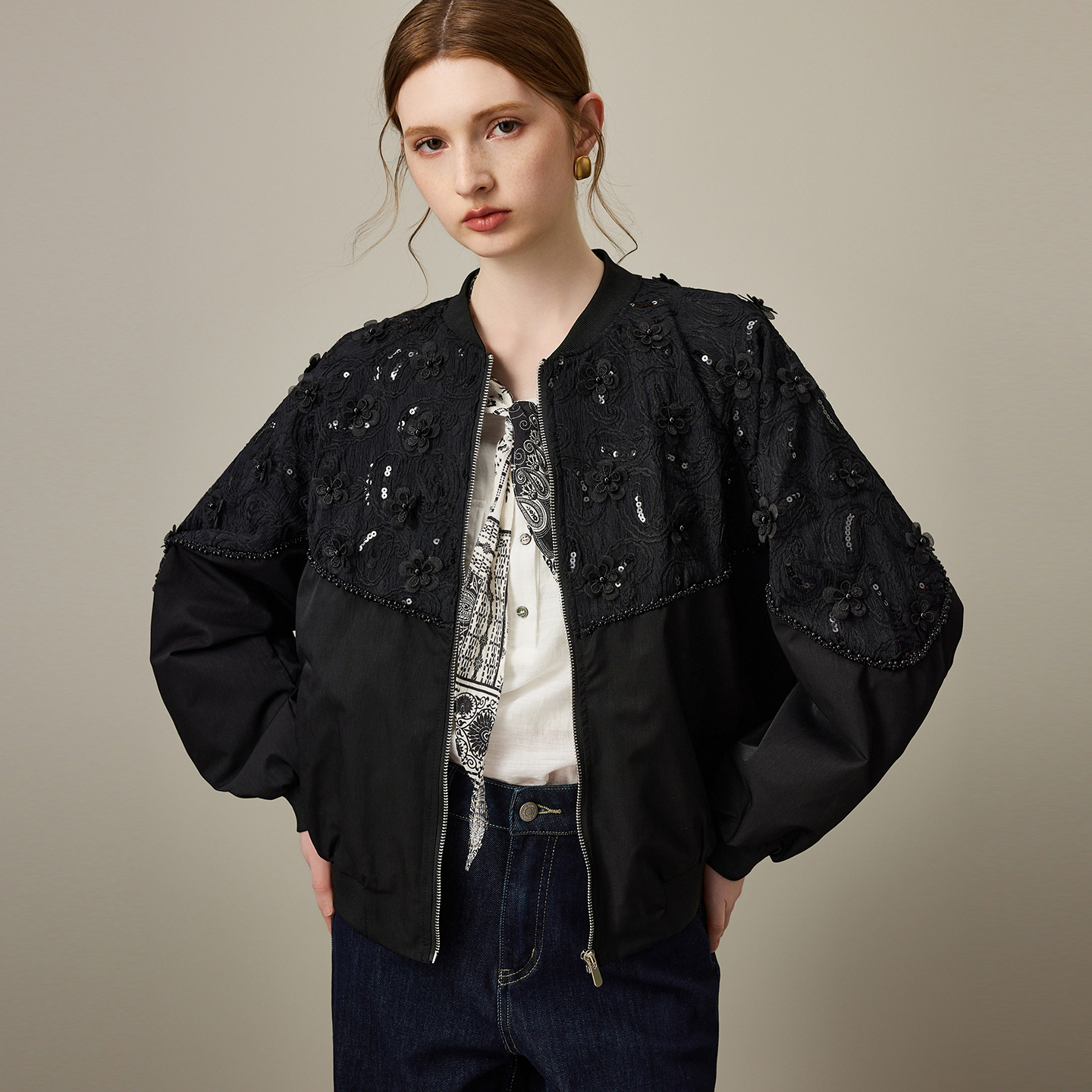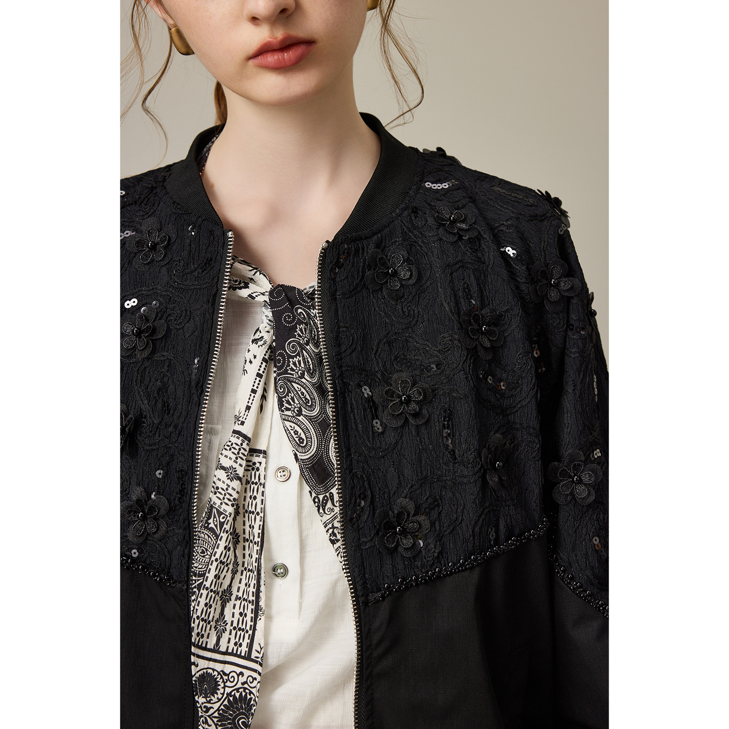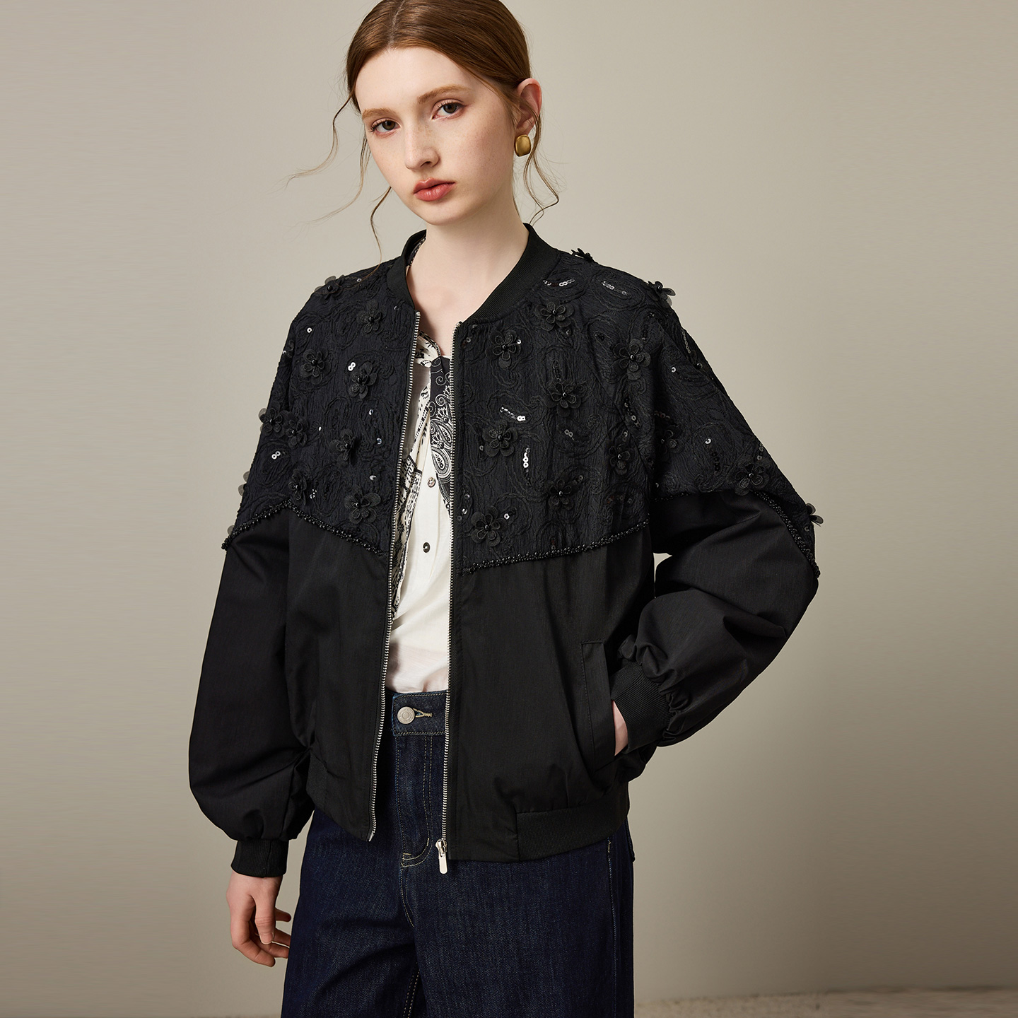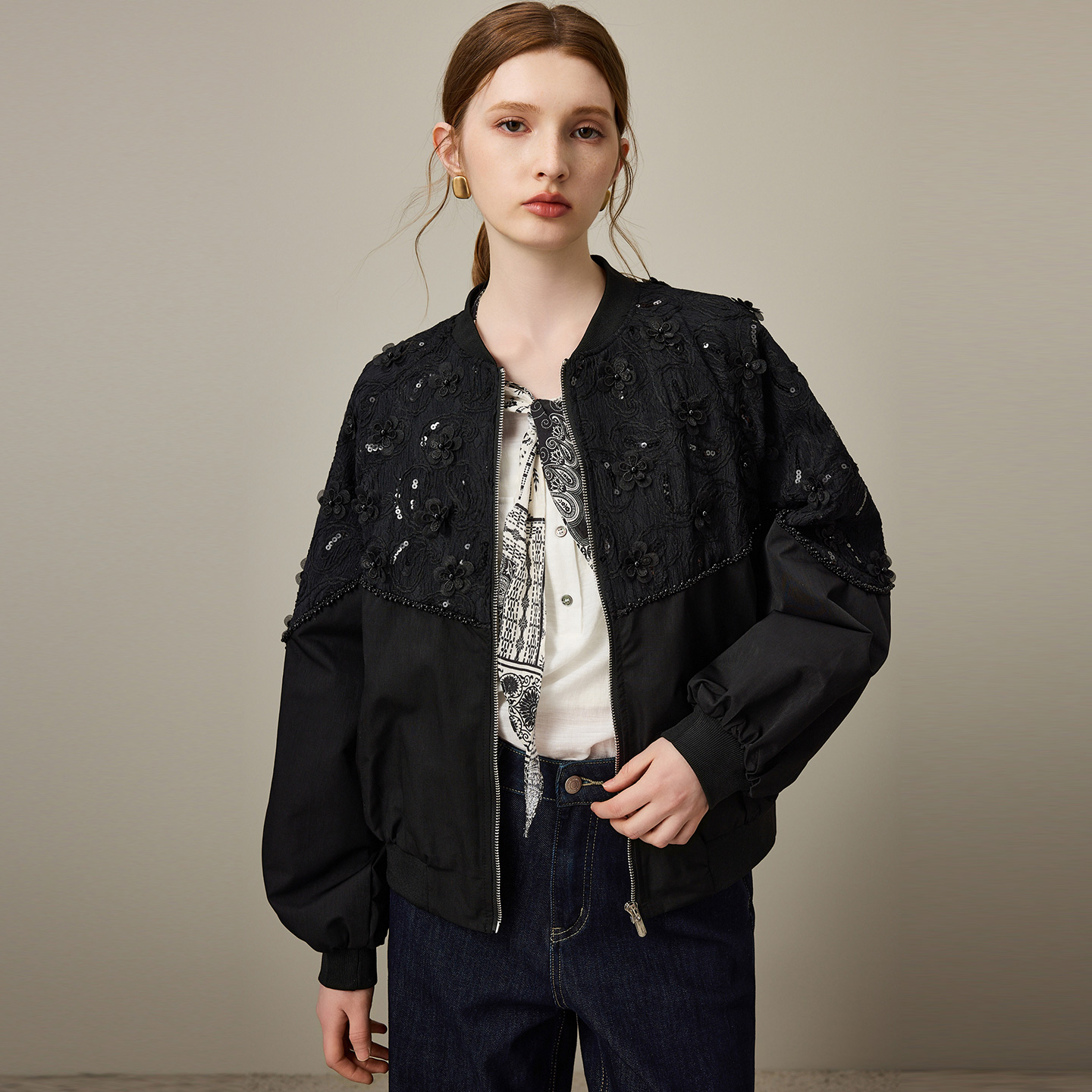 新款 外套女2025年秋季 宽松棒球服夹克潮 重工钉珠短款 dfvc黑色时尚