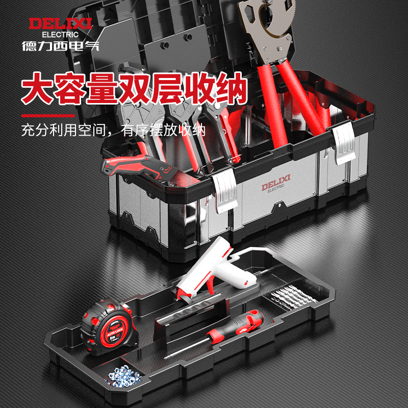 德力西不锈钢工具箱套装 五金收纳盒 车载多功能工业级家用手提式