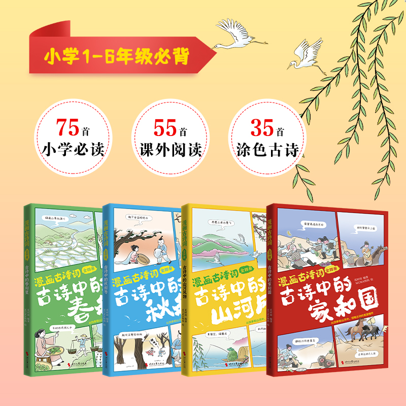 春秋冬夏山河风物家和园古诗词图画书 中华传统古诗词漫画儿童国学文化启蒙古诗词阅读漫画古诗词古诗中 漫画古诗词 全四册