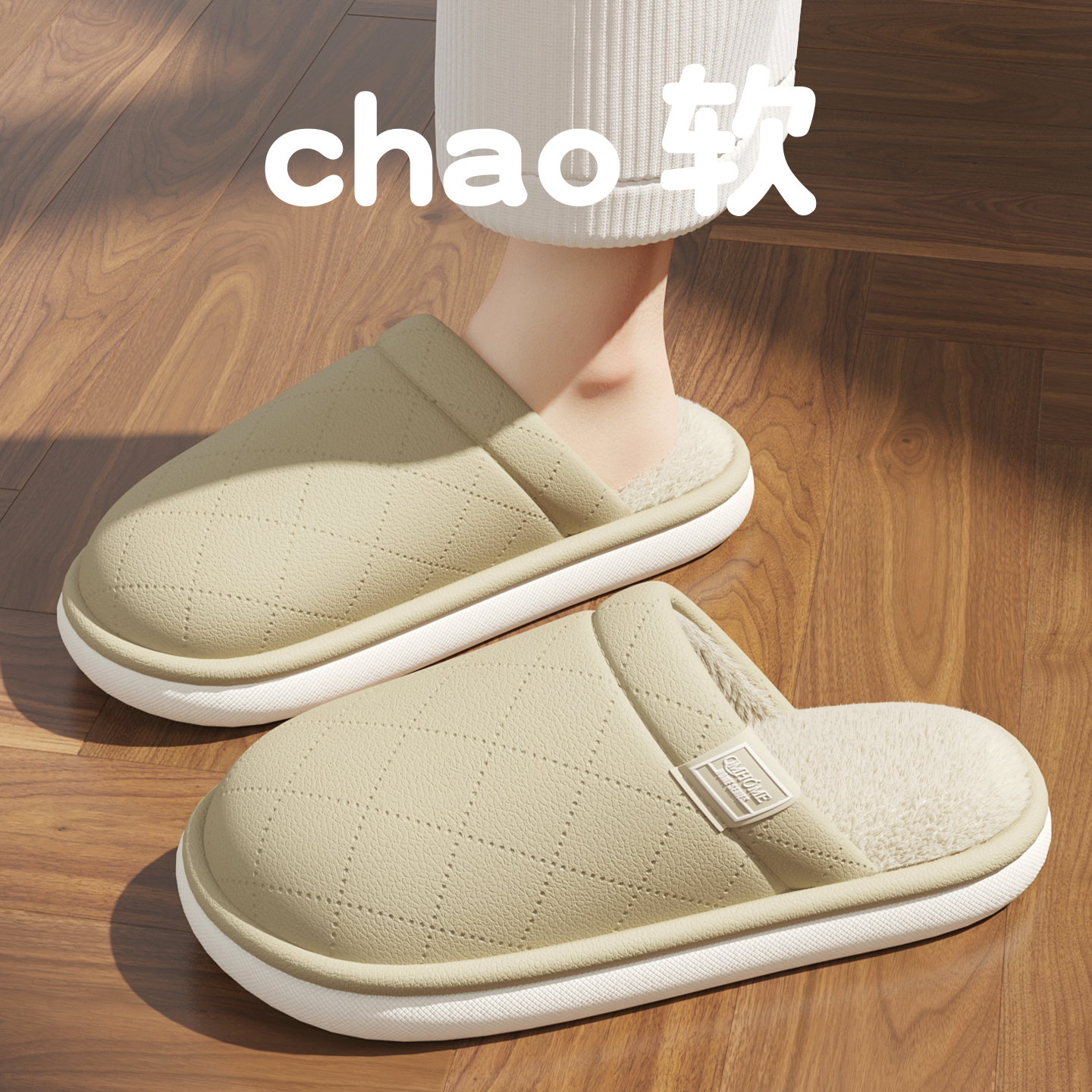 男 家居室内情侣一对毛绒保暖拖鞋 买1送1防水棉拖鞋 女秋冬2025新款