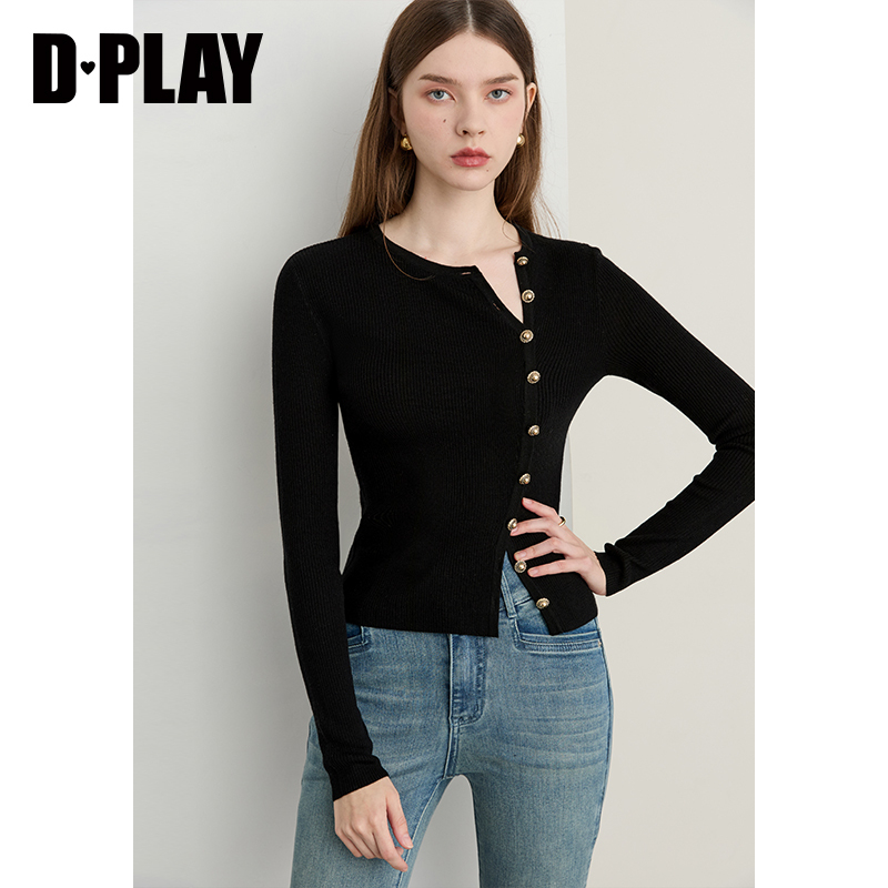 羊毛针织开衫 百家好2025秋新款 女连帽假两件毛衣外套 House Basic