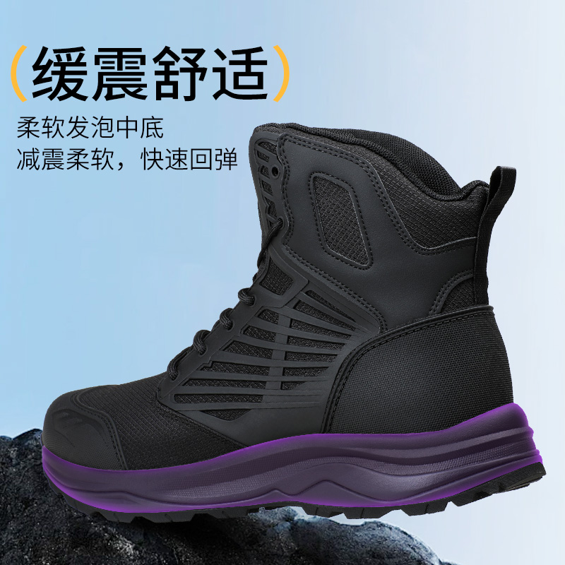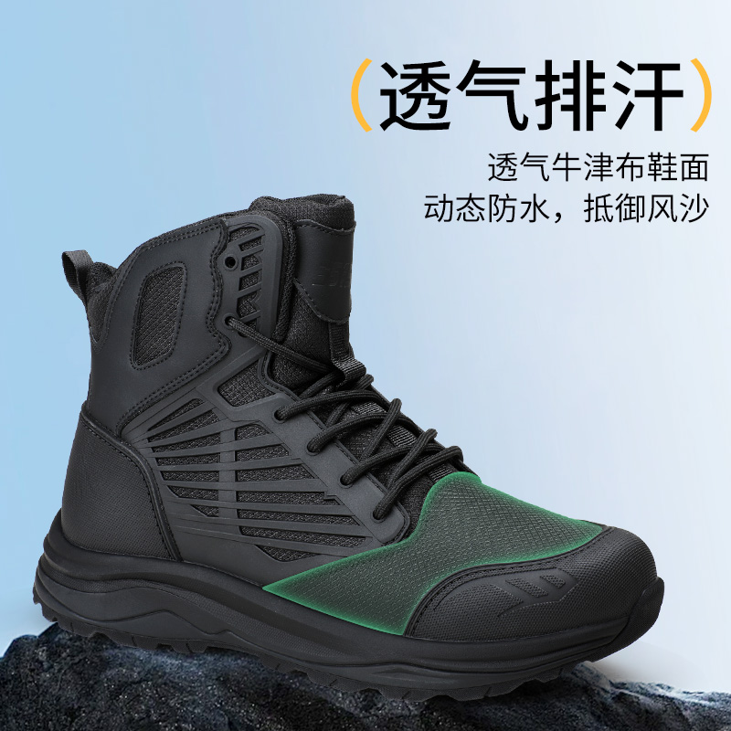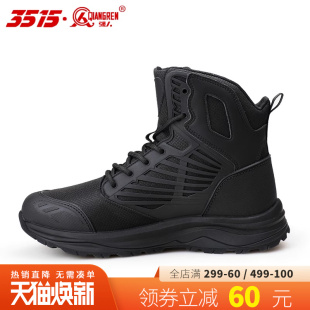 际华3515强人春秋户外靴中帮靴防刺穿轻便透气排汗靴工装 靴黑色靴