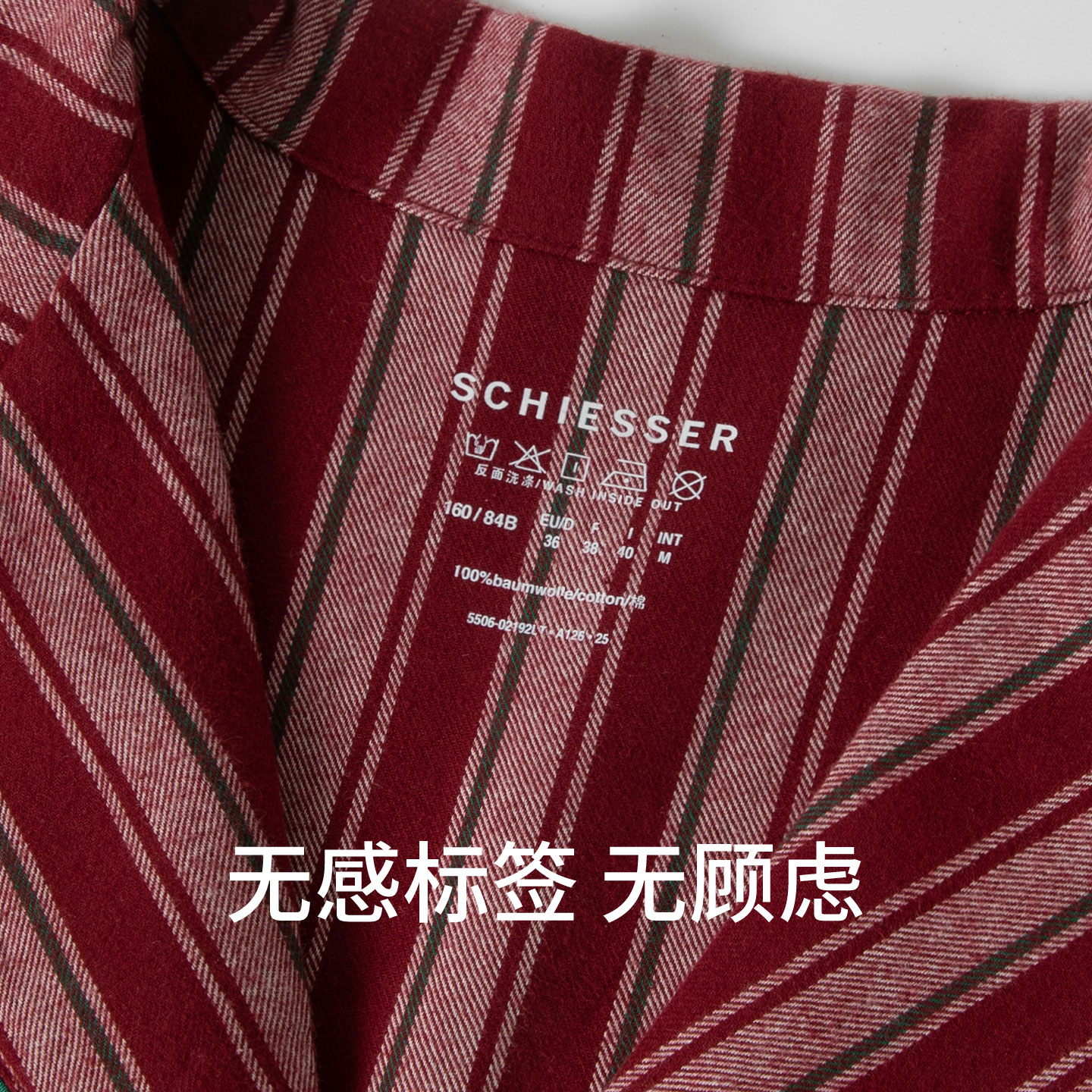 睡裙家居服 条纹大码 SCHIESSER舒雅25秋冬新品 女士纯棉翻领开衫