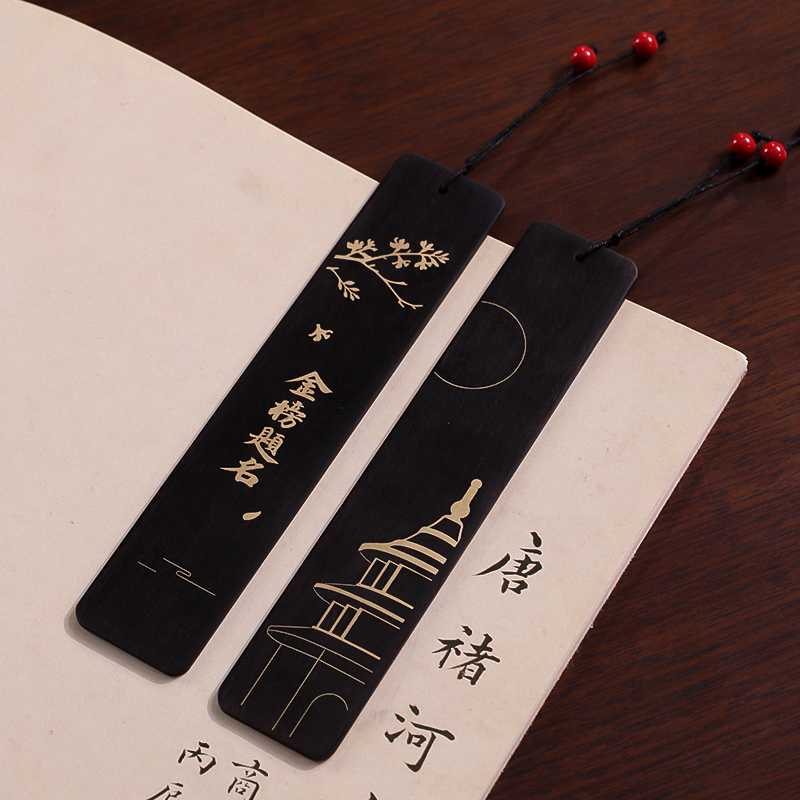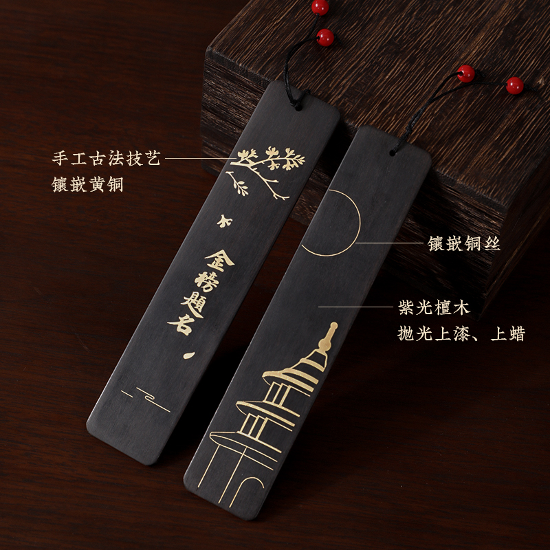 文创学生中考高考礼物考试普陀山 文昌阁创意书签礼盒紫光檀嵌铜古典高档精致国风中式 西泠印社 金榜题名