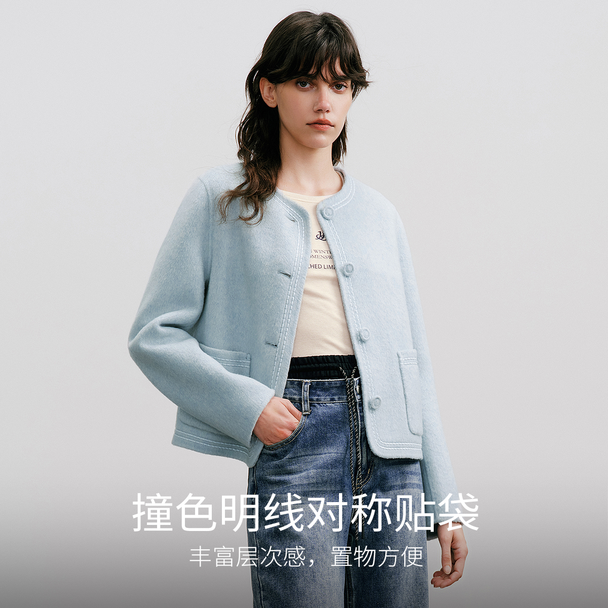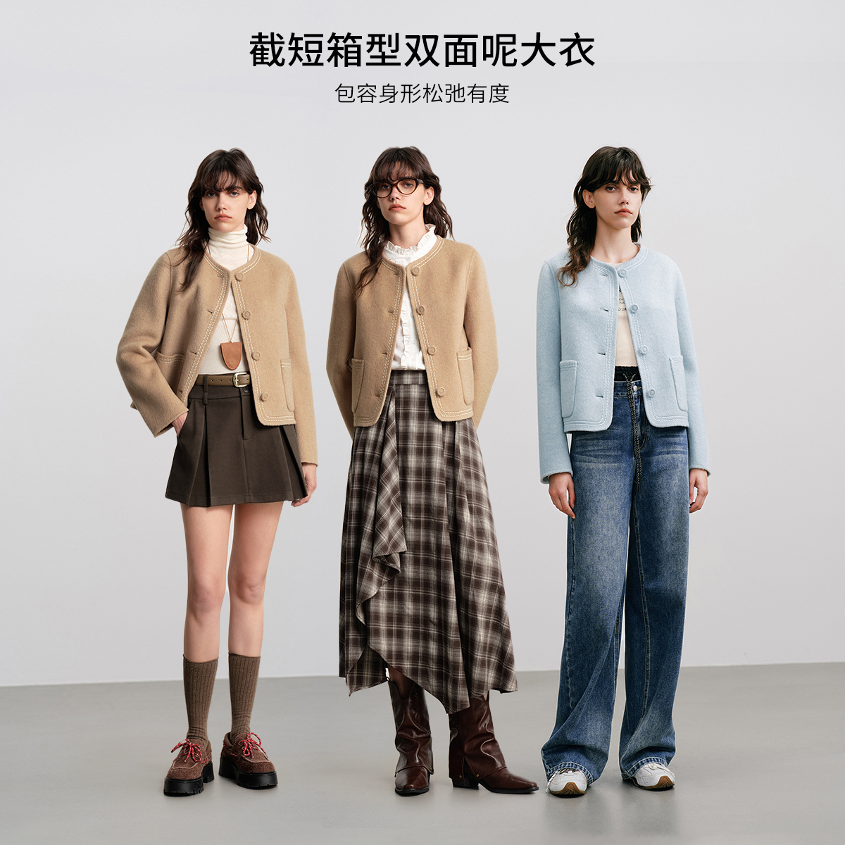 圆领大衣女小个子气质毛呢外套 高端羊毛双面呢短款 2025年春季 新款