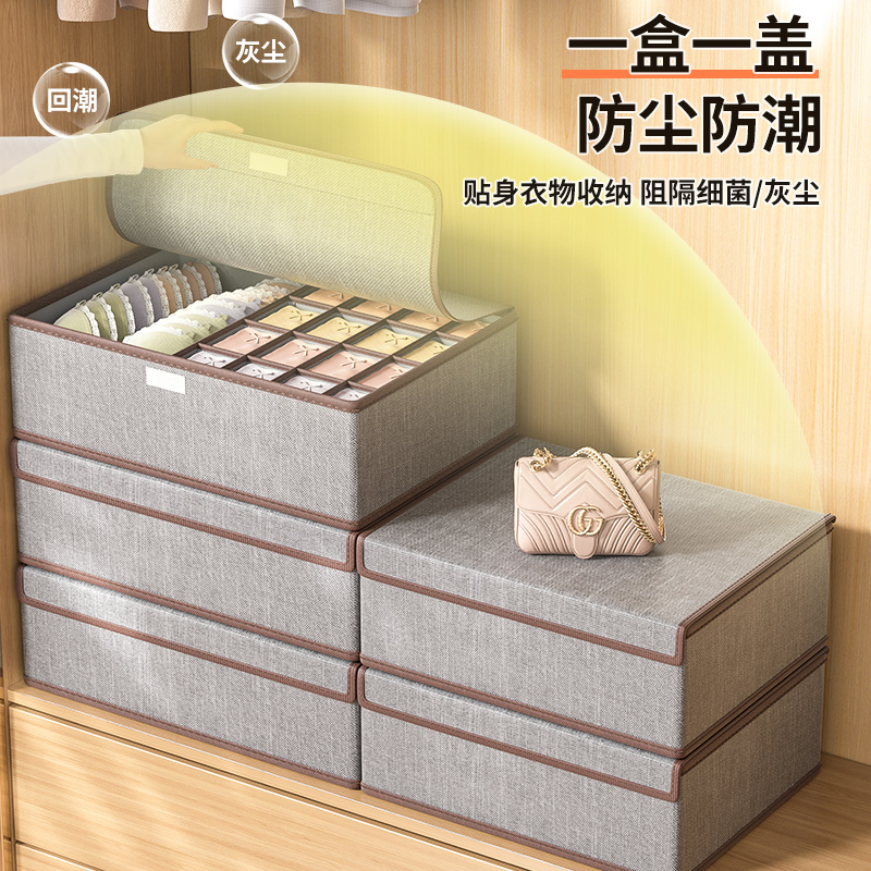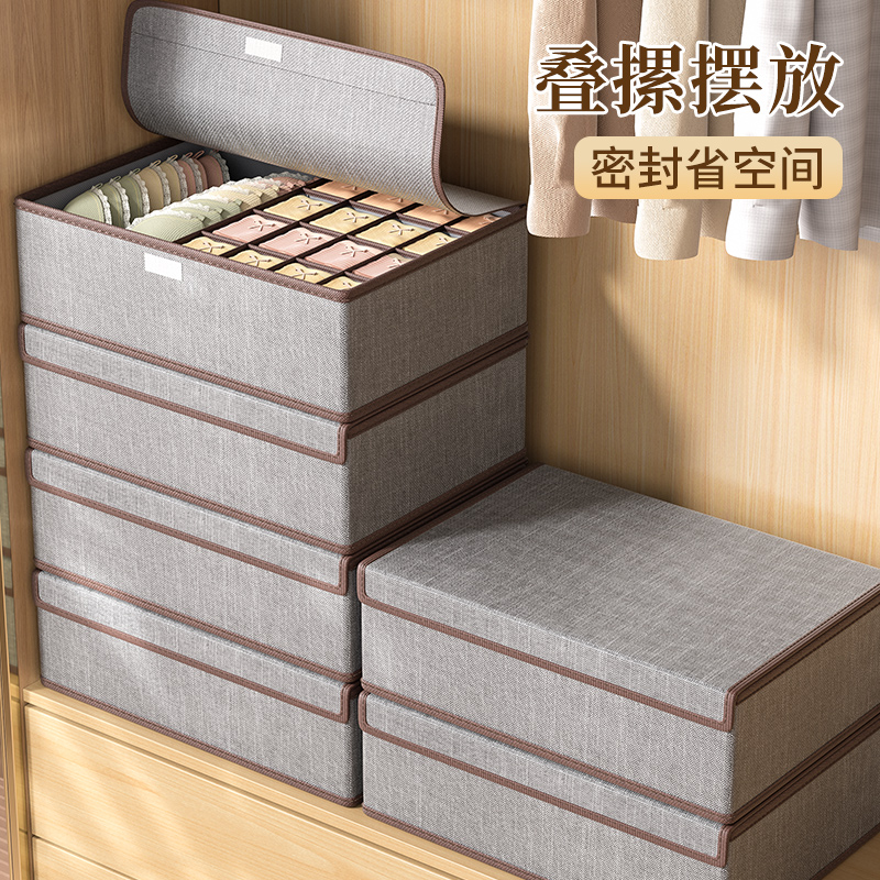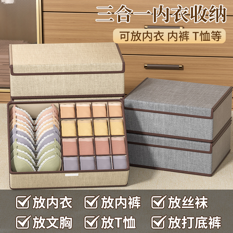 可水洗棉麻内衣收纳盒防潮防尘整理箱三合一可折叠衣柜收纳箱衣物