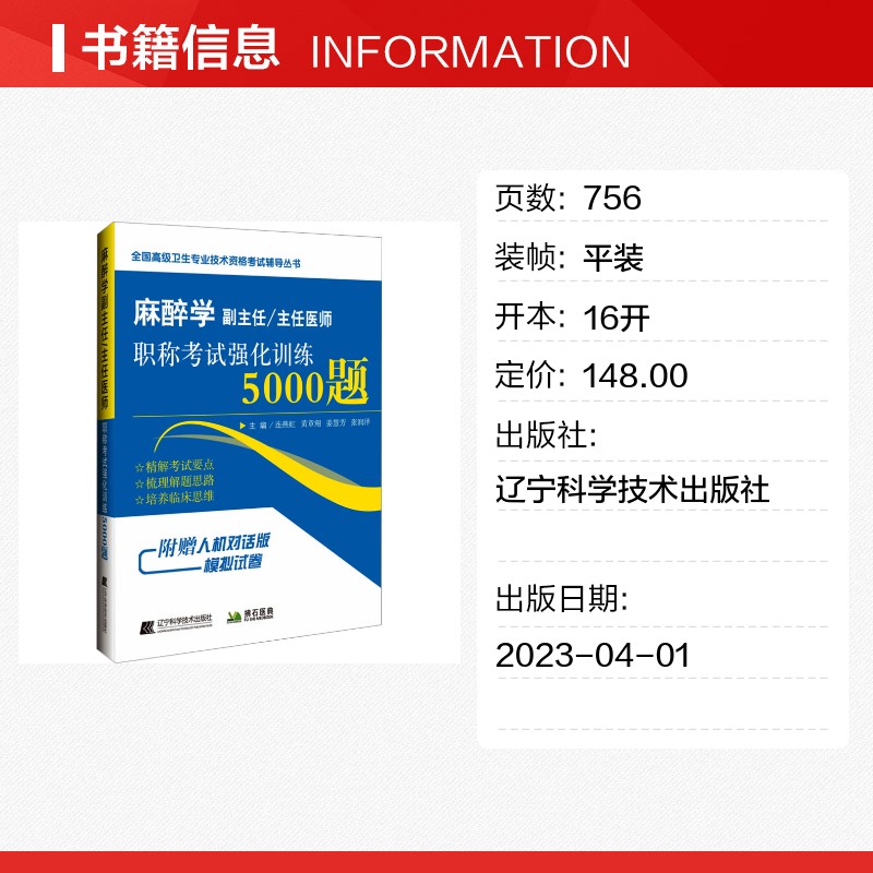 等 编 辽宁科学技术出版 主任医师职称考试强化训练5000题 社 图书籍 连燕虹 新华书店正版 麻醉学副主任 卫生资格考试生活