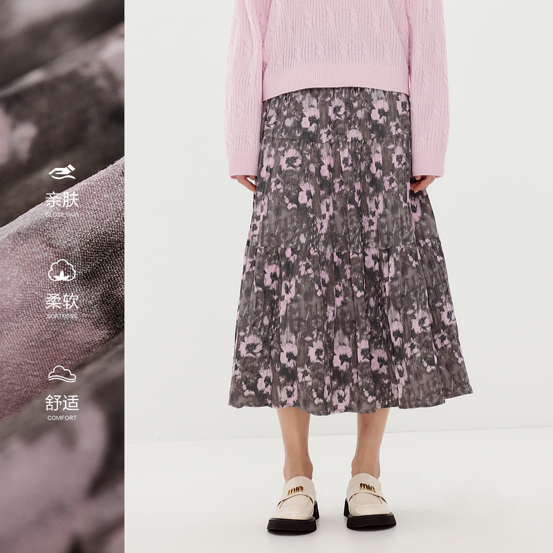 水云间a字量感大摆半身裙女压褶中长款 伞裙子宽松百搭2025秋冬款