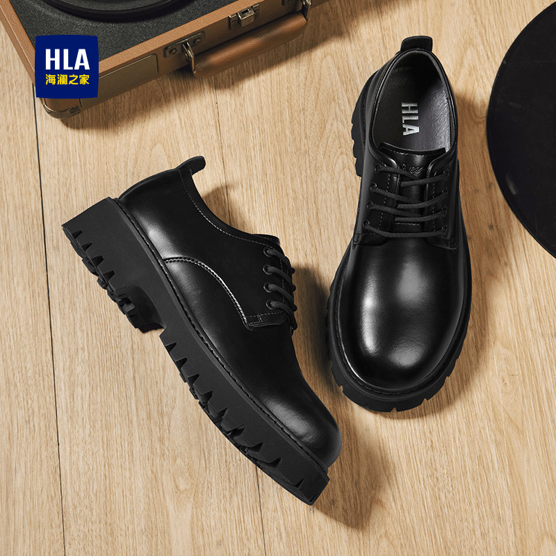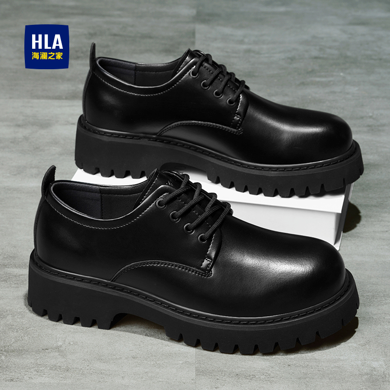 商务休闲上班通勤结婚增高黑色大圆头厚底德比鞋 正装 男款 回力皮鞋