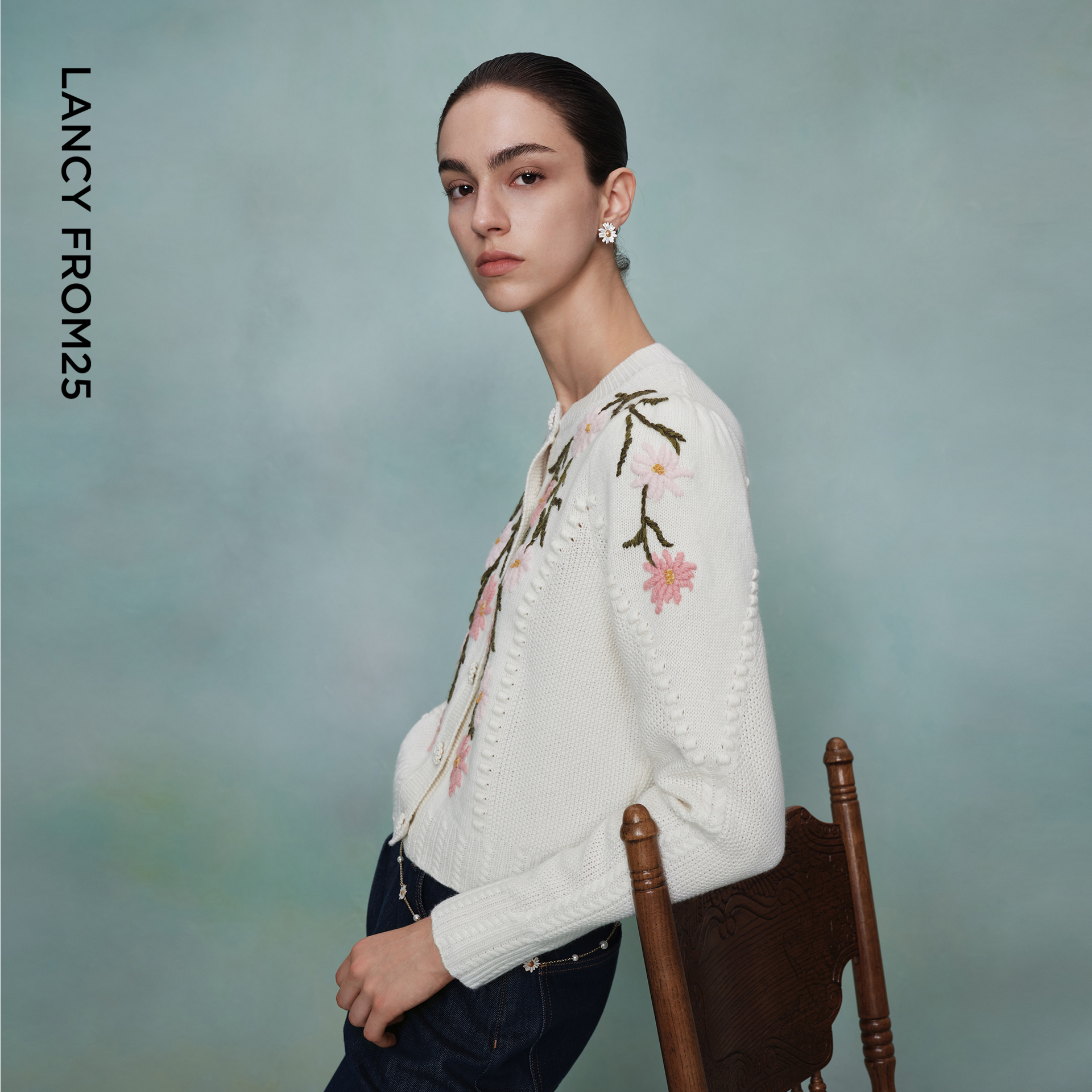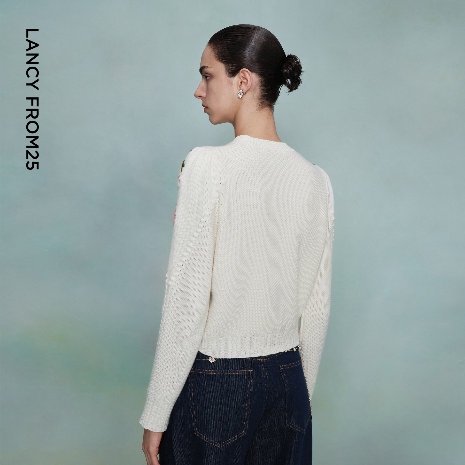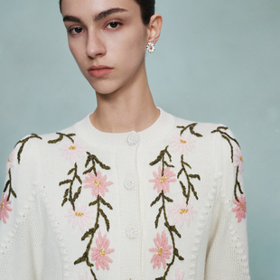 针织衫 朗姿圆领雏菊短款 艺术家联名 优雅气质毛衣女 秀场同款