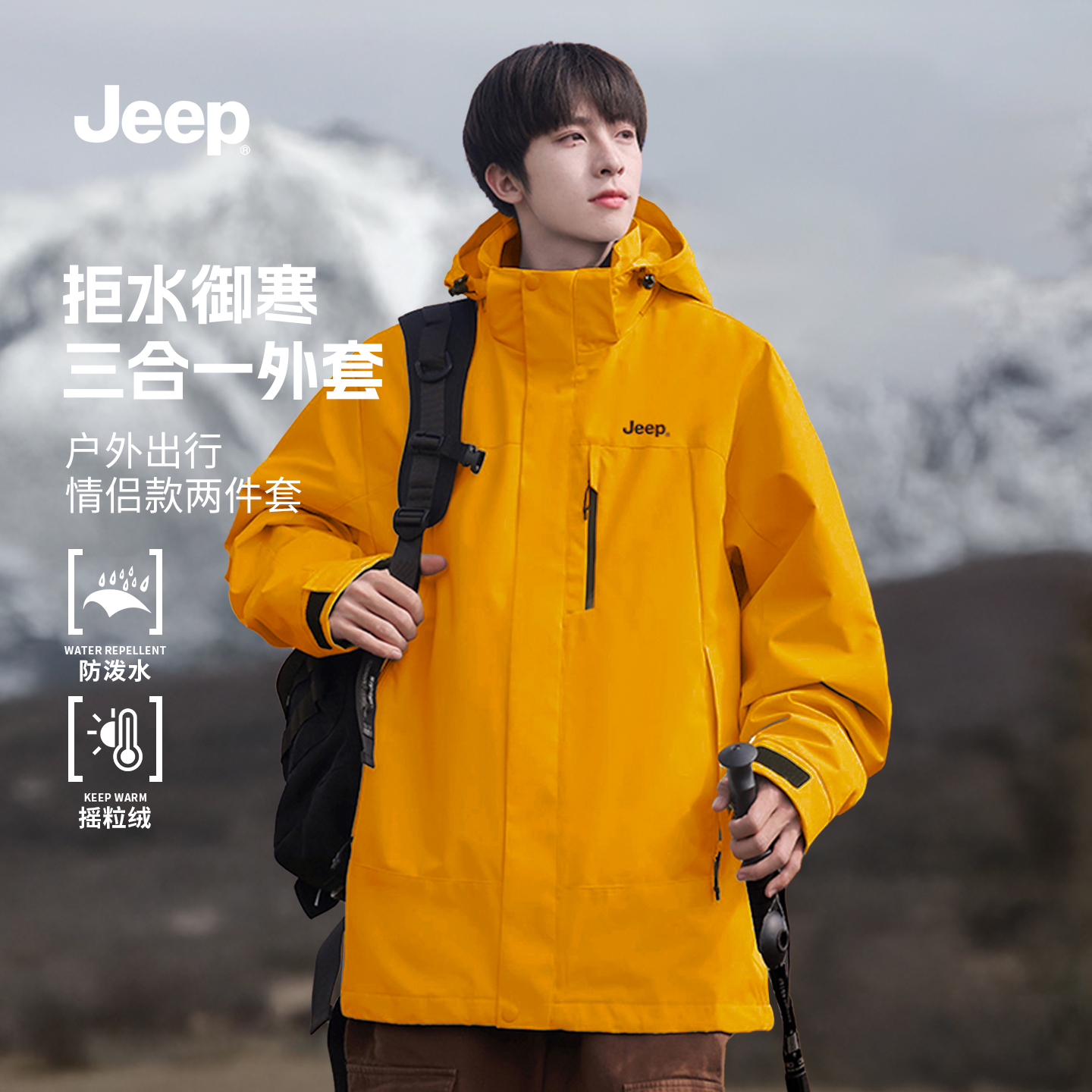 骆驼冲锋衣三合一可拆卸两件套男女情侣款 外套户外防水旅游登山服