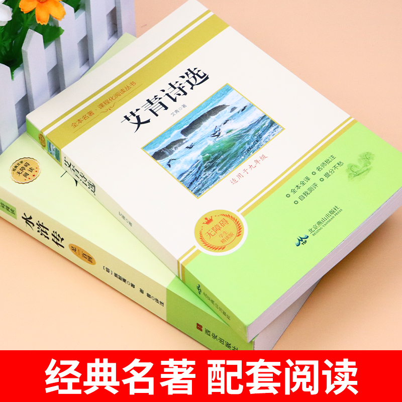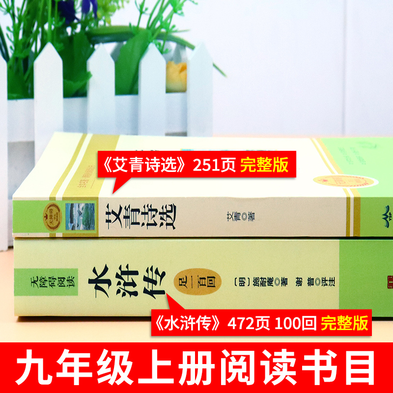 配套人教版 100回初中生八年级下册阅读名著九年级上册课外阅读书籍必读正版 书目9九上初三课外书和艾青诗选A 完整版 水浒传原著正版