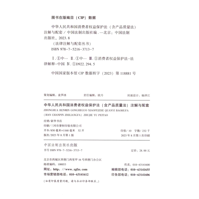 第6版 注解与配套 中国法制出版 社法律知识读物中国法制出版 中华人民共和国消费者权益保护法 社新华书店正版 含产品质量法