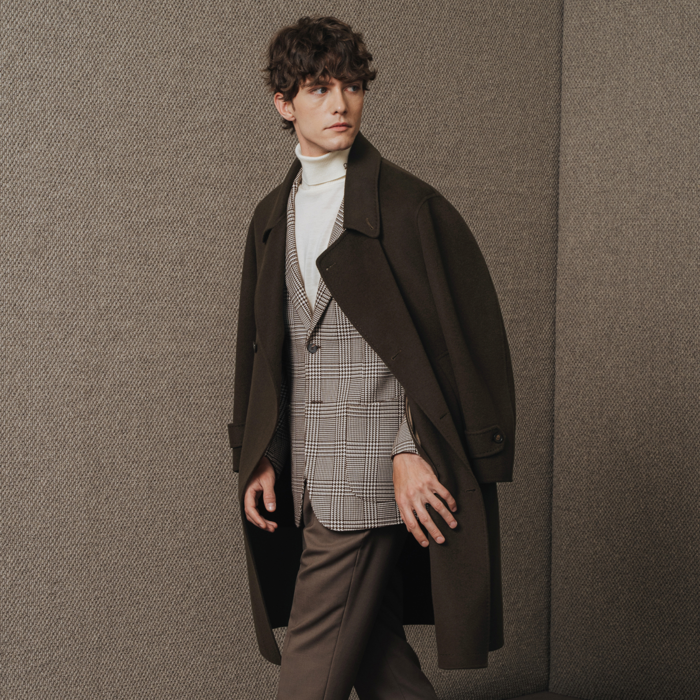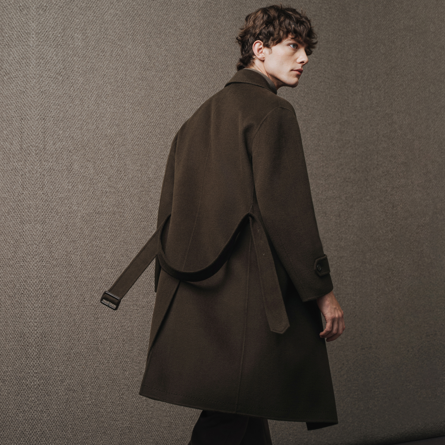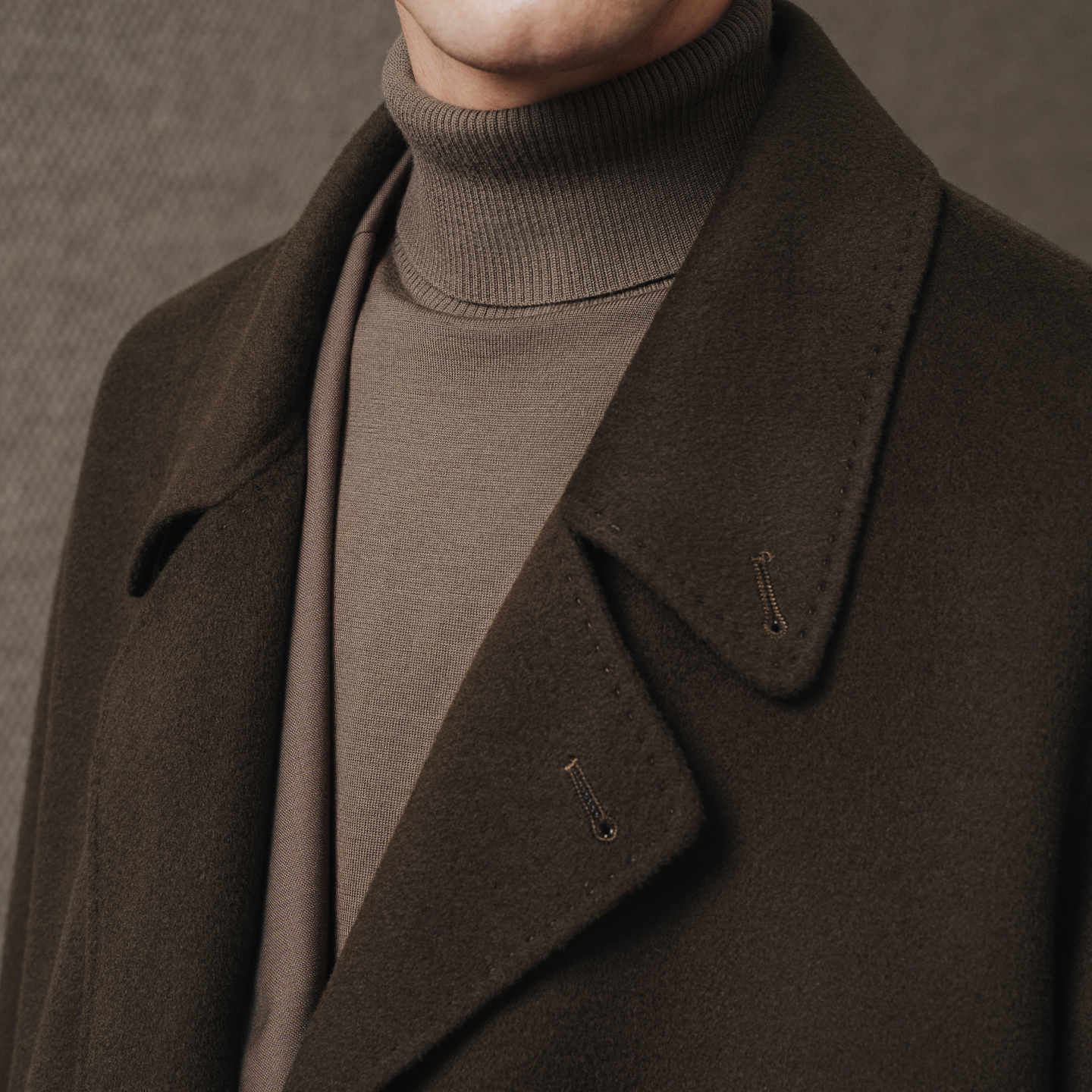 过膝加厚外套冬季 重磅老钱风双面羊毛呢子大衣男长款 风衣 储格