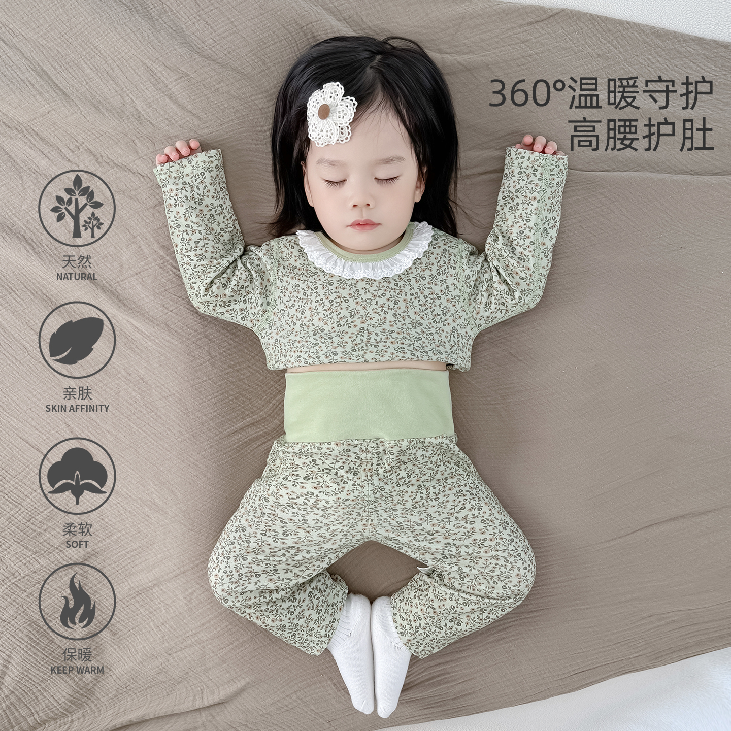 碎花纯棉冬季 婴儿秋衣秋裤 打底内衣 分体两件套装 女宝宝睡衣春秋款