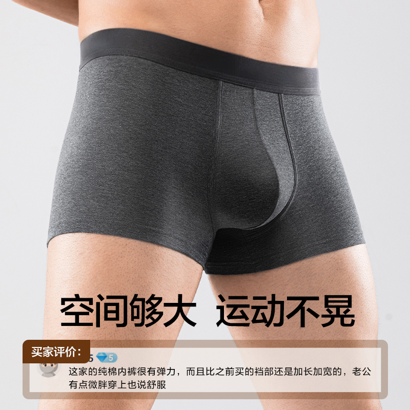 衩四角短裤 3件 纯棉透气裆裤 男士 男生 蕉内银皮300S平角内裤