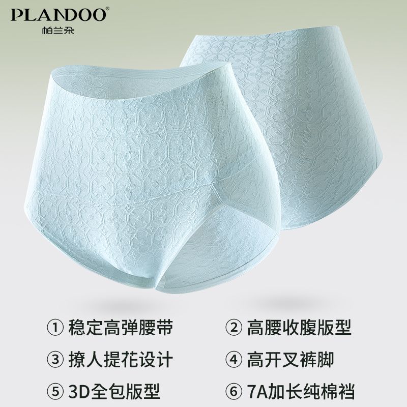 帕兰朵女士纯棉内裤 高开叉不夹臀提花高弹力高腰加长裆部三角内裤