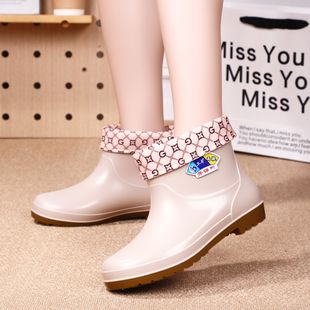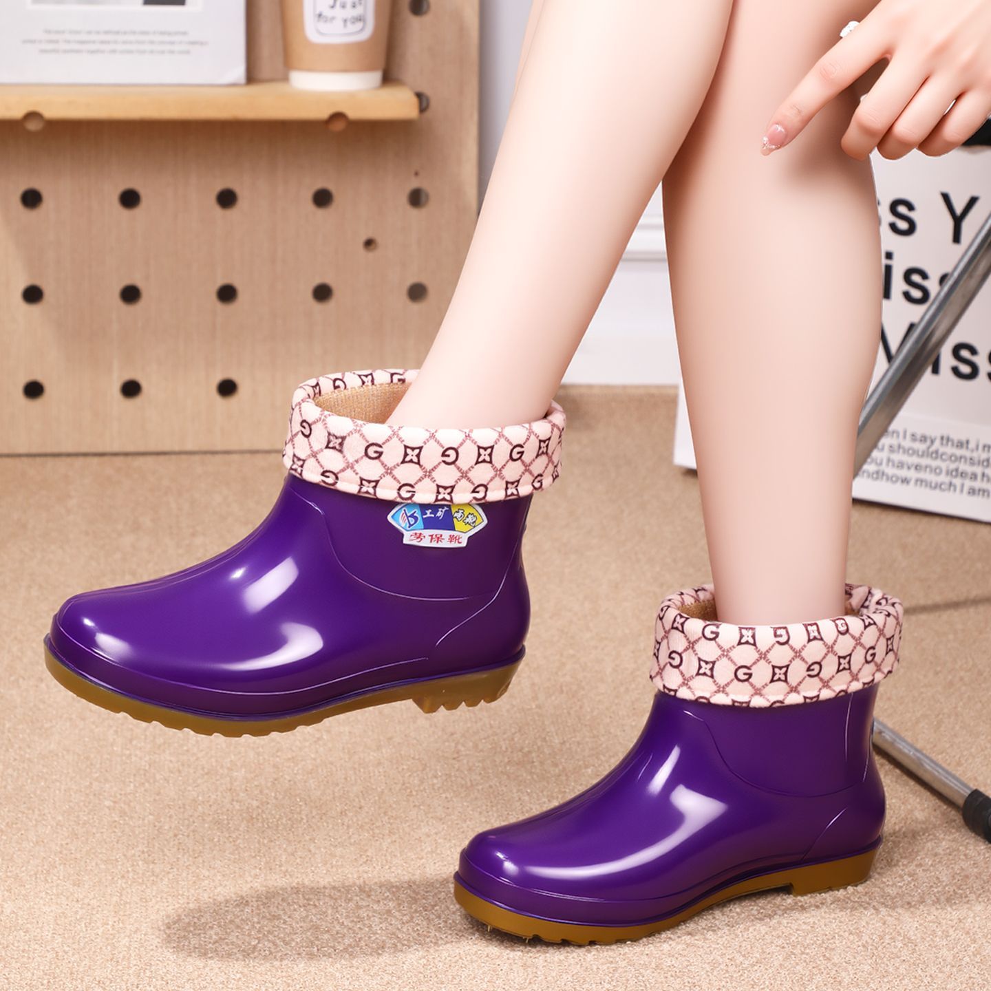 水靴厨房防水加棉保暖胶鞋 防滑雨靴成人外穿水鞋 女短筒时尚 雨鞋