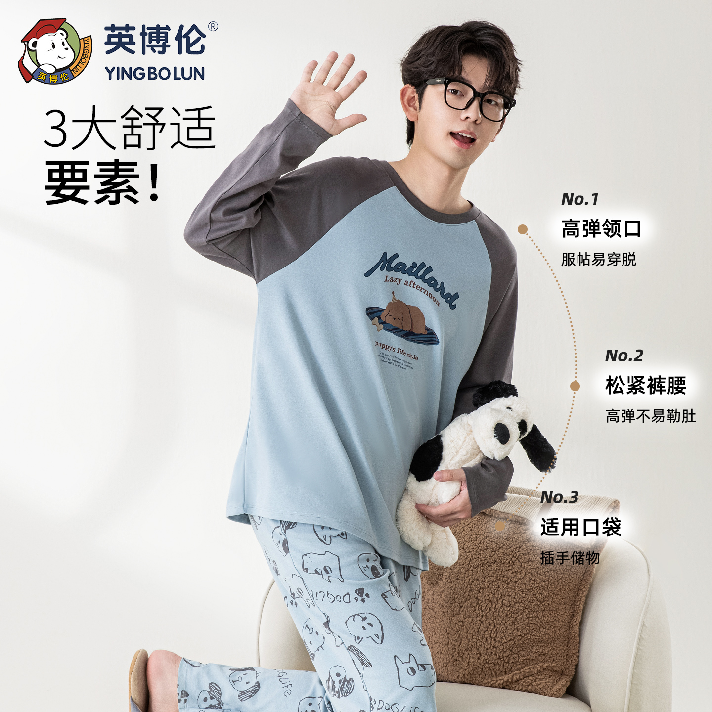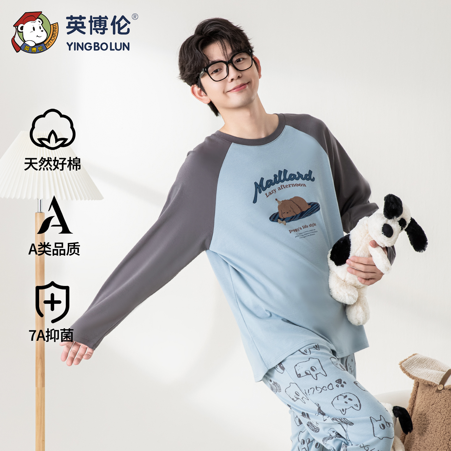 英博伦青少年睡衣春秋新款 套头全棉a类男生家居服 纯棉男大童长袖