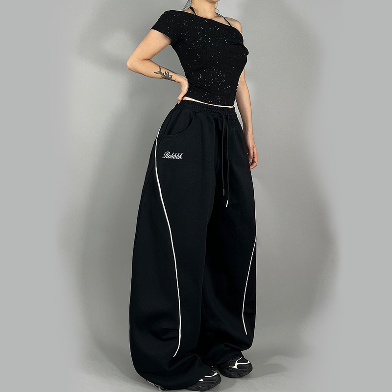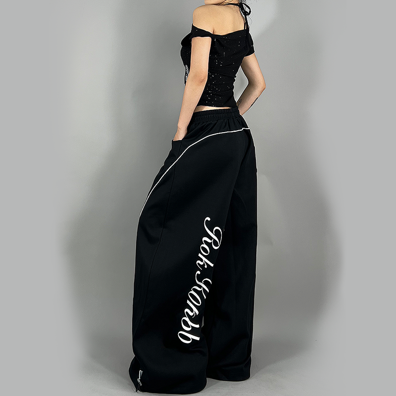 女爵士舞 线条感字母设计黑色休闲裤 ROKBBK K布韩街舞潮牌美式