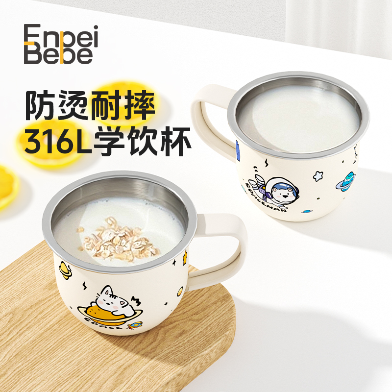 Enpeibebe儿童水杯敞口学饮杯防摔宝宝家用喝水杯子幼儿园牛奶杯