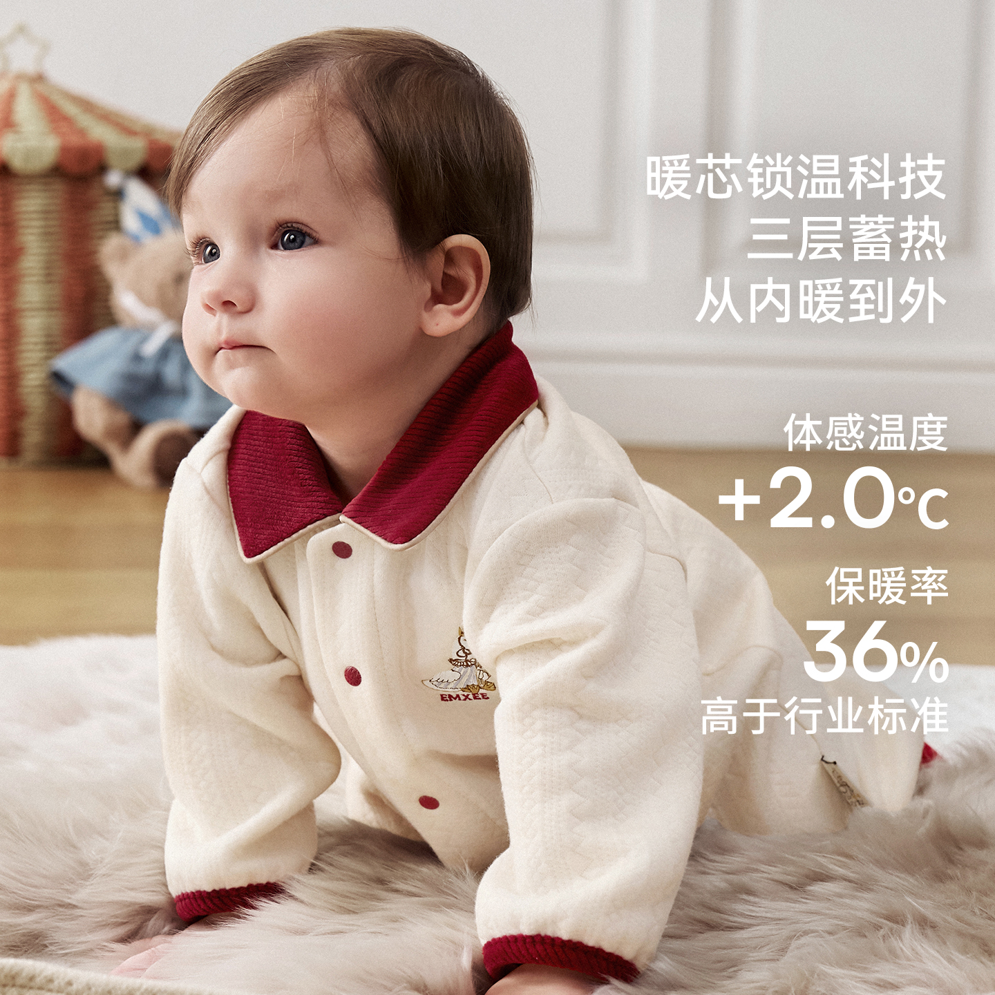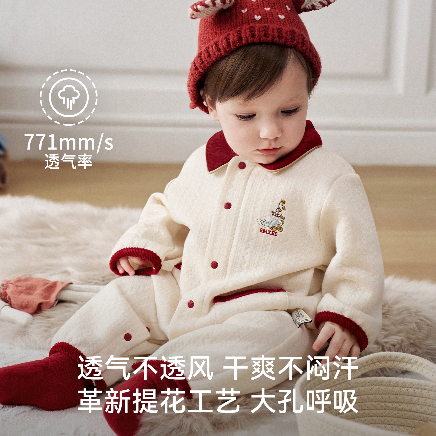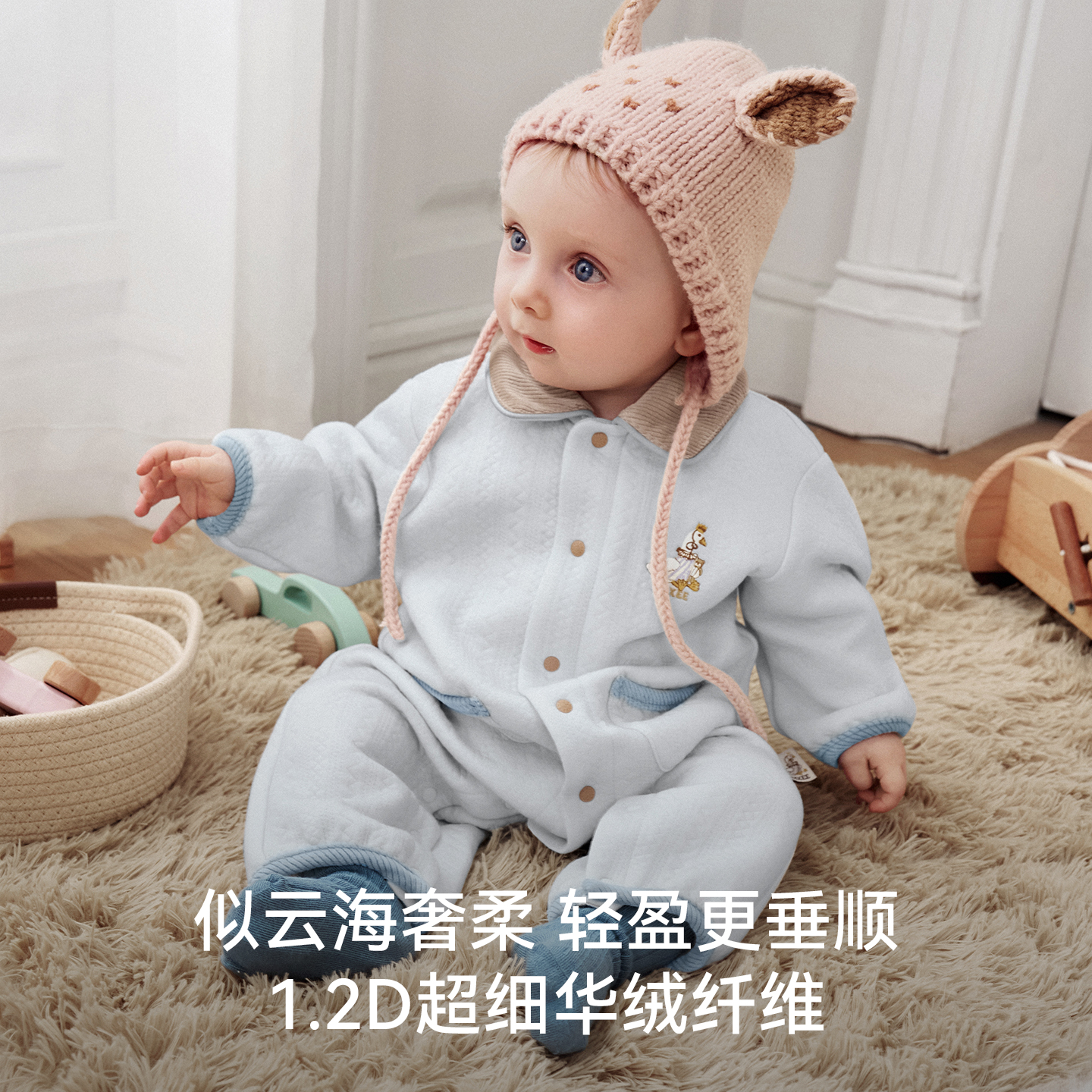 嫚熙幸运鹅婴儿连体衣空气棉新生儿宝宝加厚保暖衣服早秋冬爬服