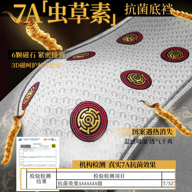 3平角仪式 磁石冰丝抗菌无痕凉感透气印花四角裤 感 内裤 虫草男士