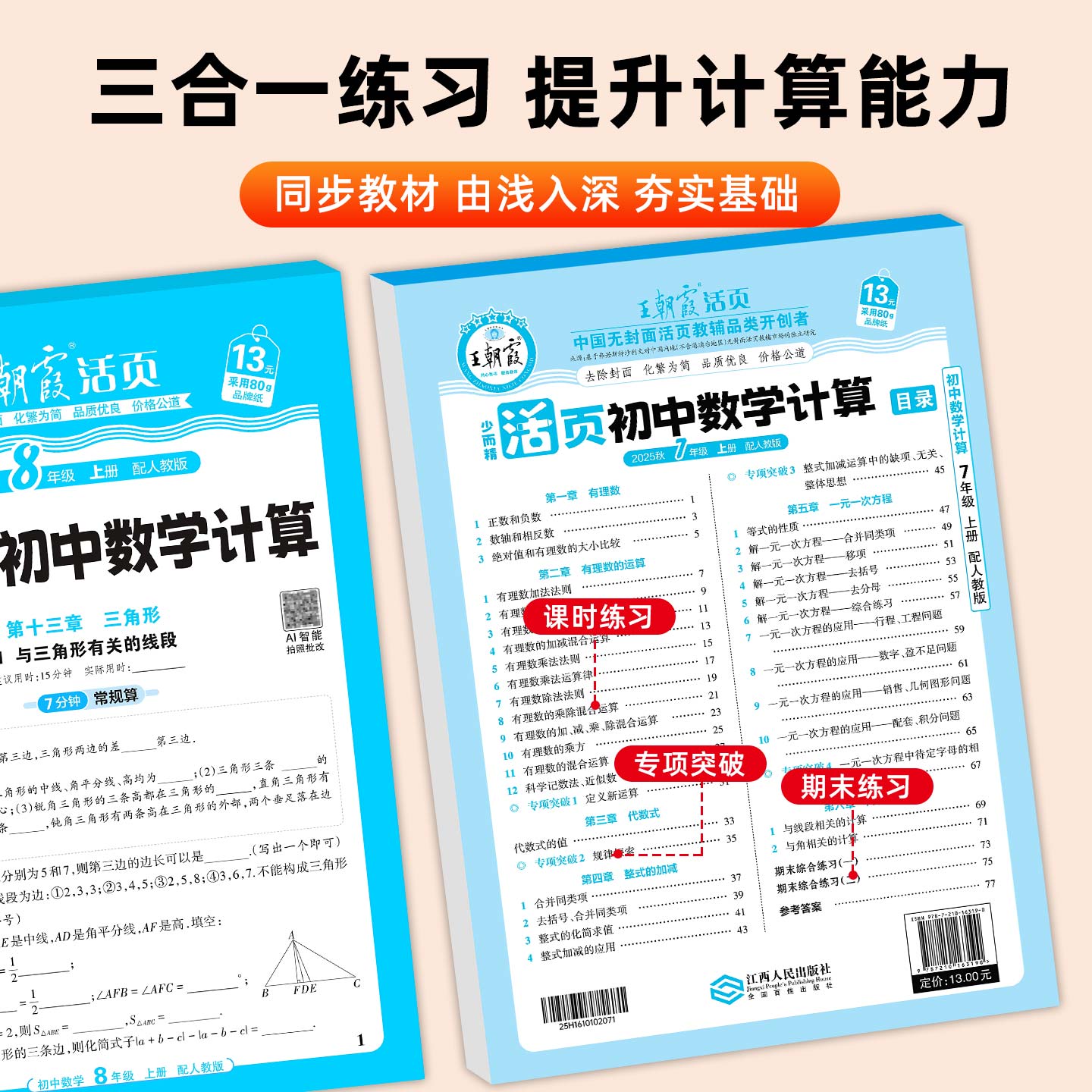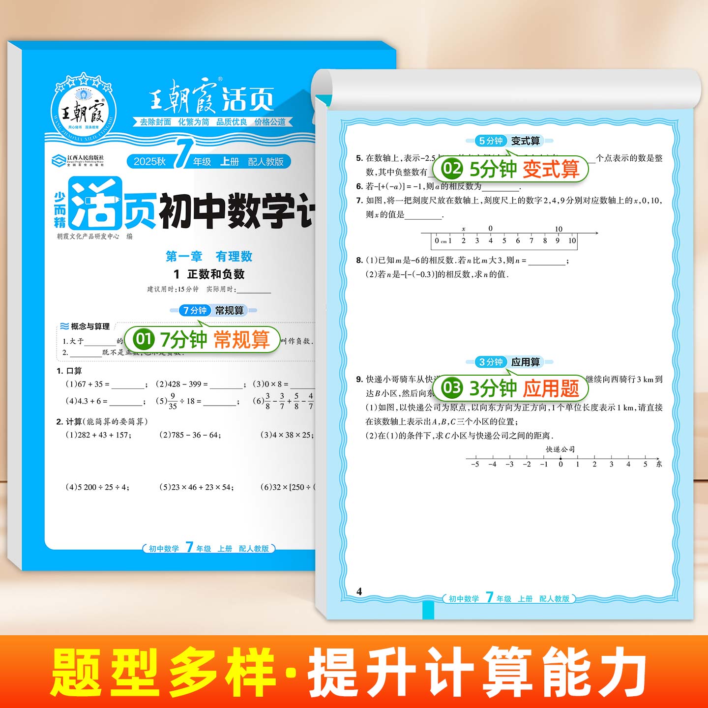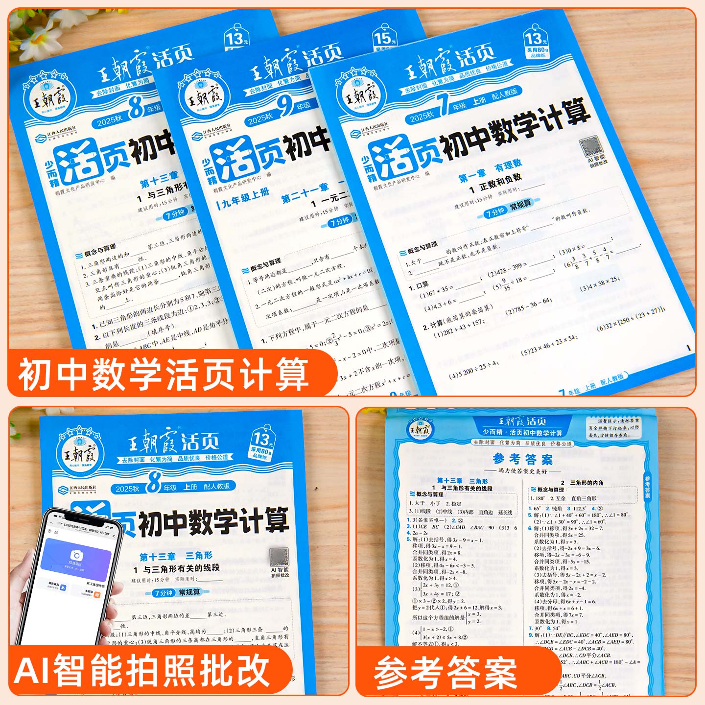 计算题专项强化训练初二三应用题练习册教材同步练习题 北师大版 2025秋新版 王朝霞初中活页计算初一数学必刷题七八九年级上册人教版