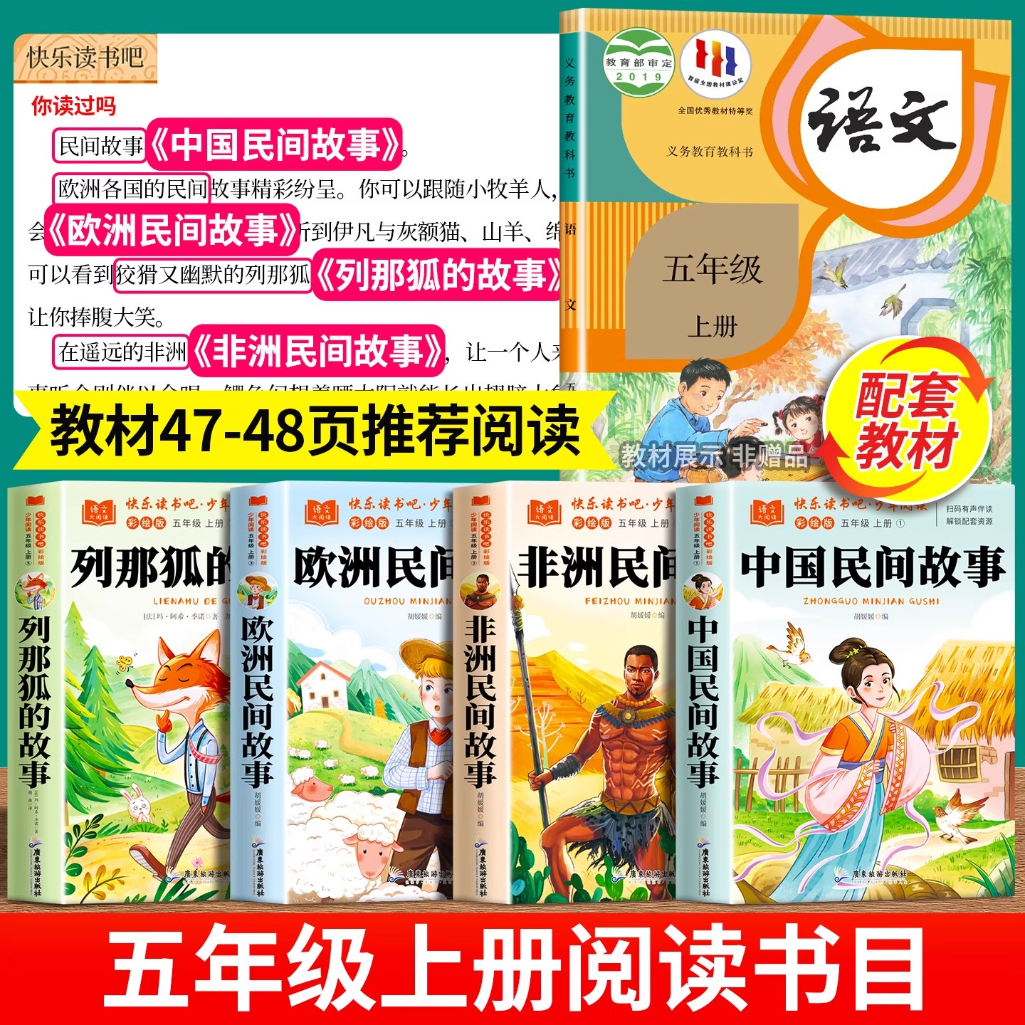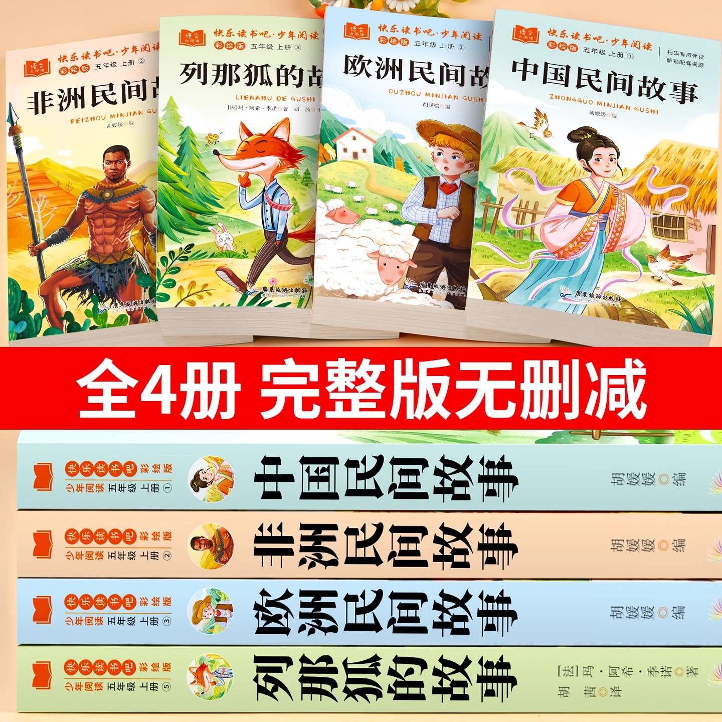 故事人教版 欧洲民间故事五年级上册必读 快乐读书吧5上阅读书目中国民间故事非洲民间故事列那狐 全套4册老师推荐 书籍 课外书正版