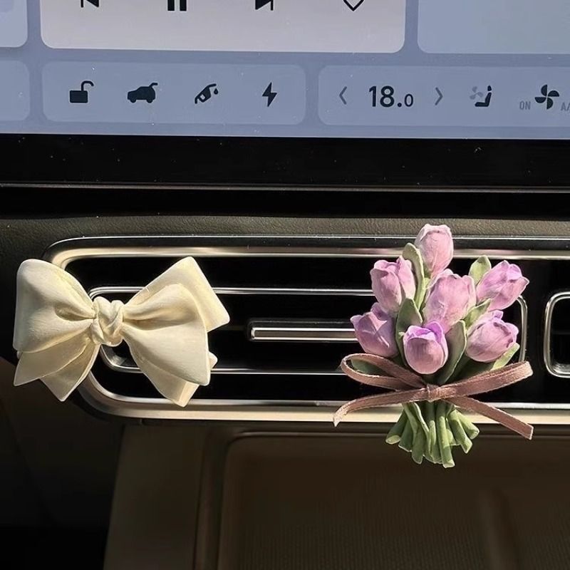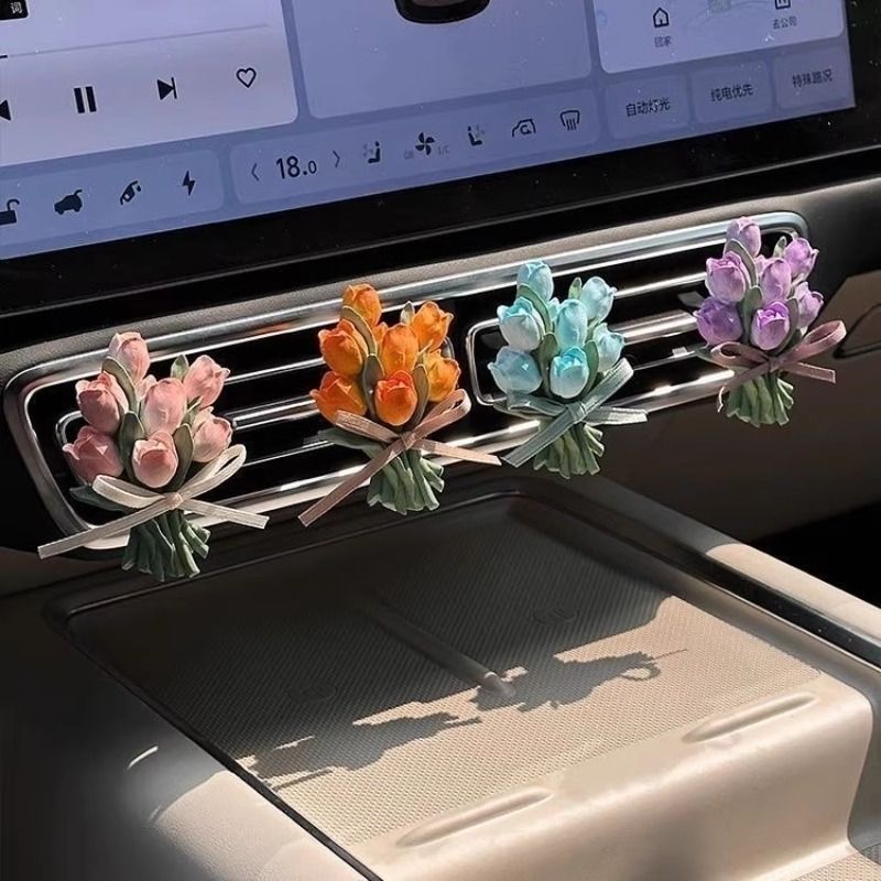 车载香薰扩香石气质小众郁金香花朵汽车出风口装 饰挂件淡香氛礼物