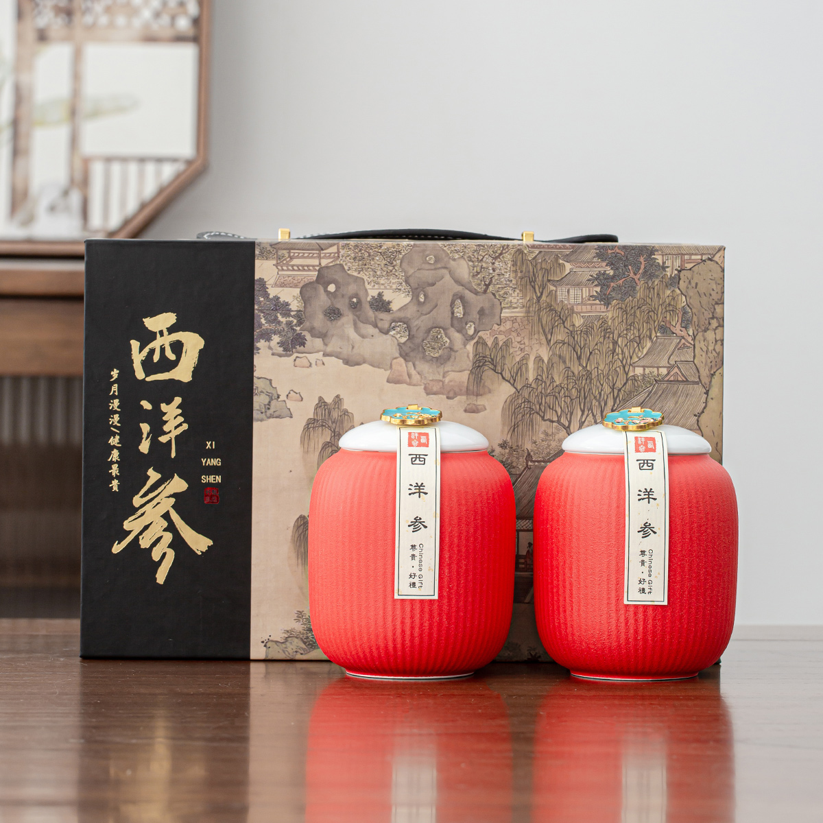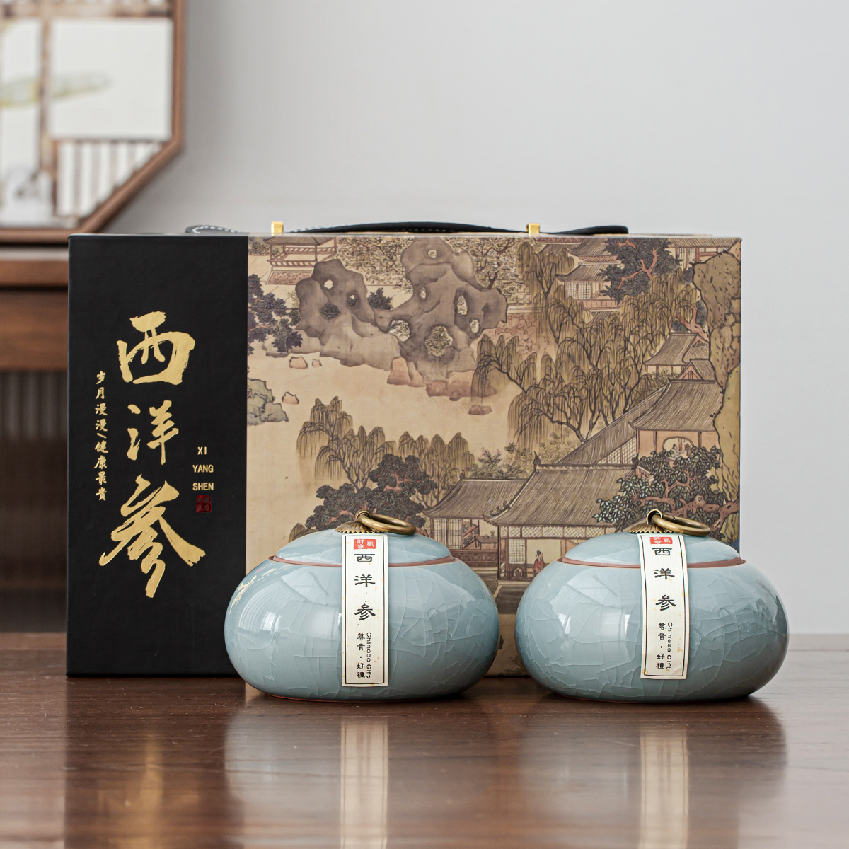 中式 盒陶瓷密封双罐200克250克西洋参粉礼盒空盒子 切片西洋参包装