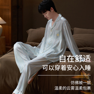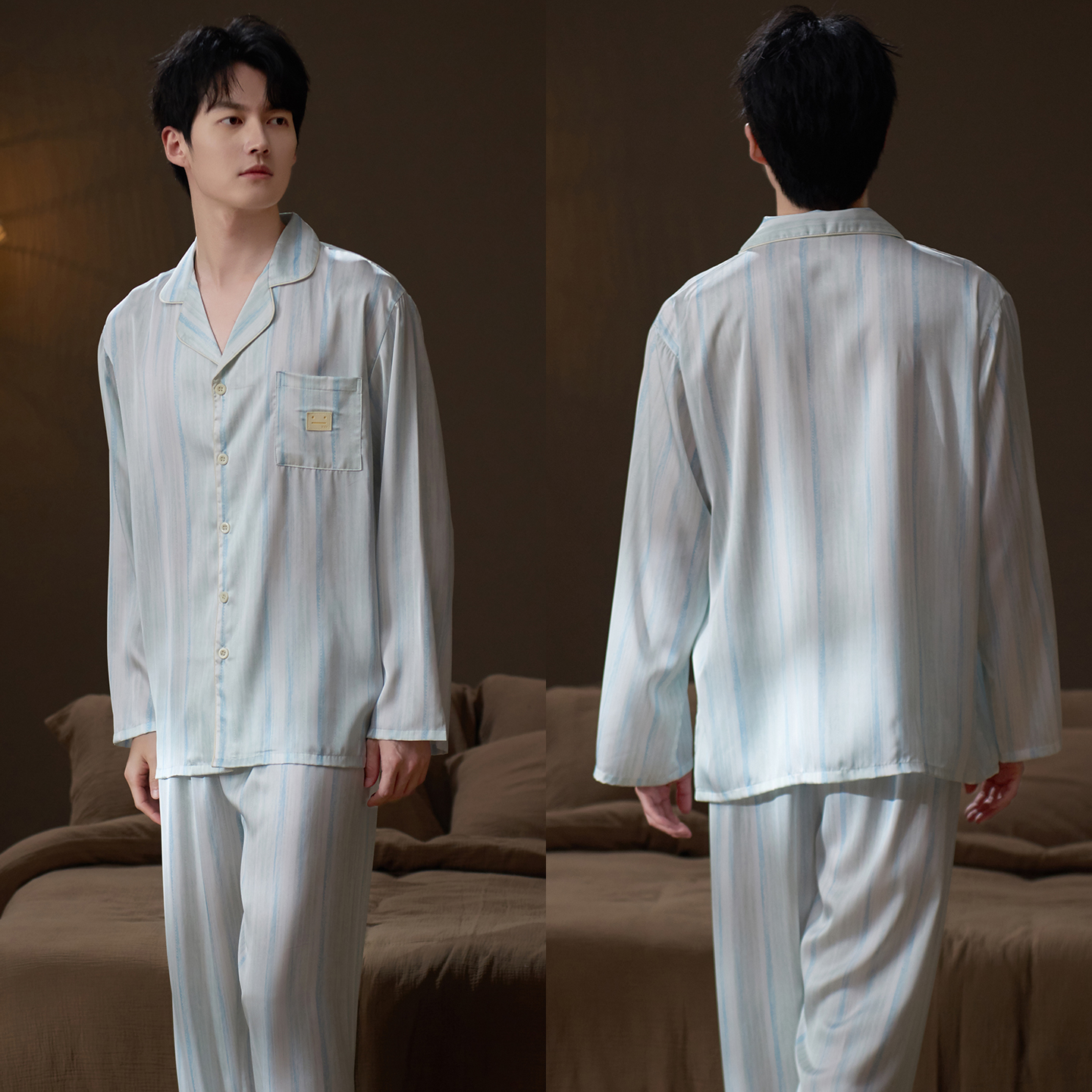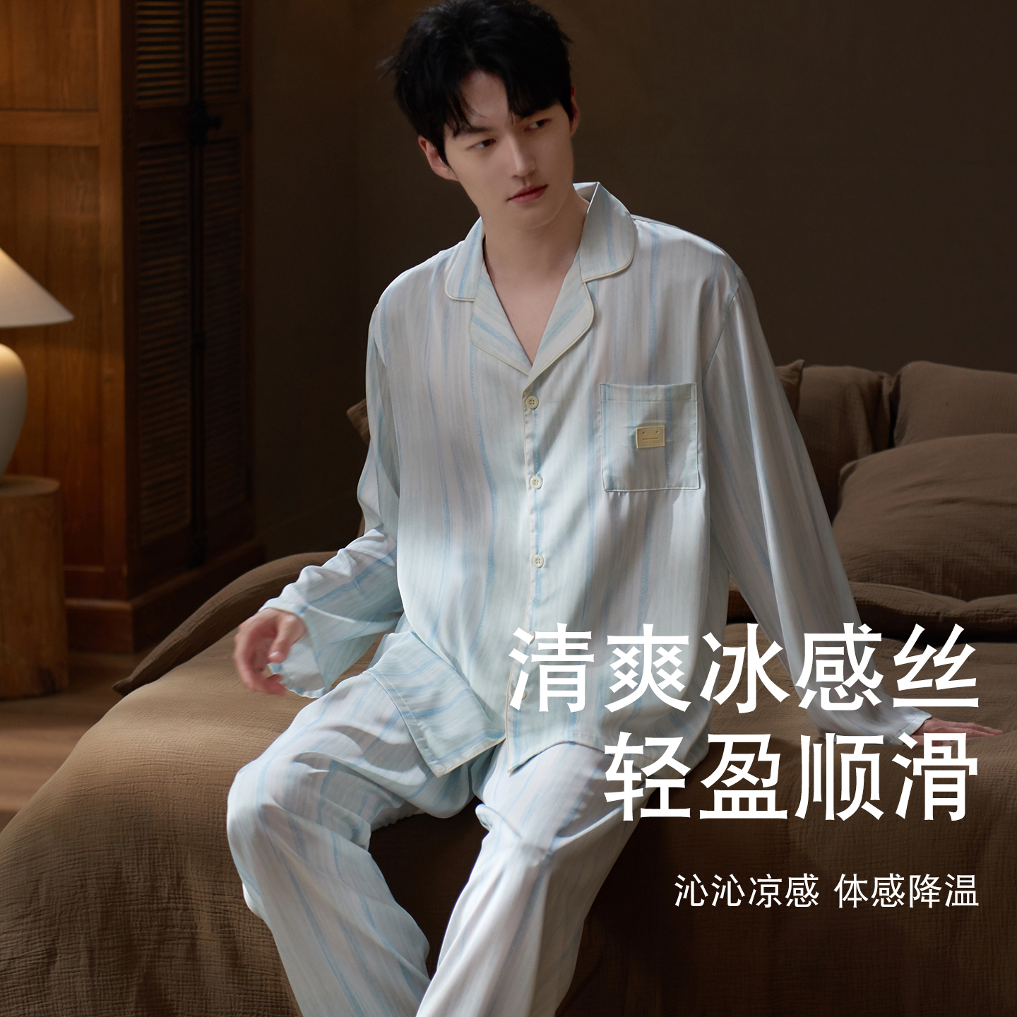 套装 乐姿梦水光丝绸睡衣男春秋款 家居服男士 冰丝可外穿春夏季 长袖