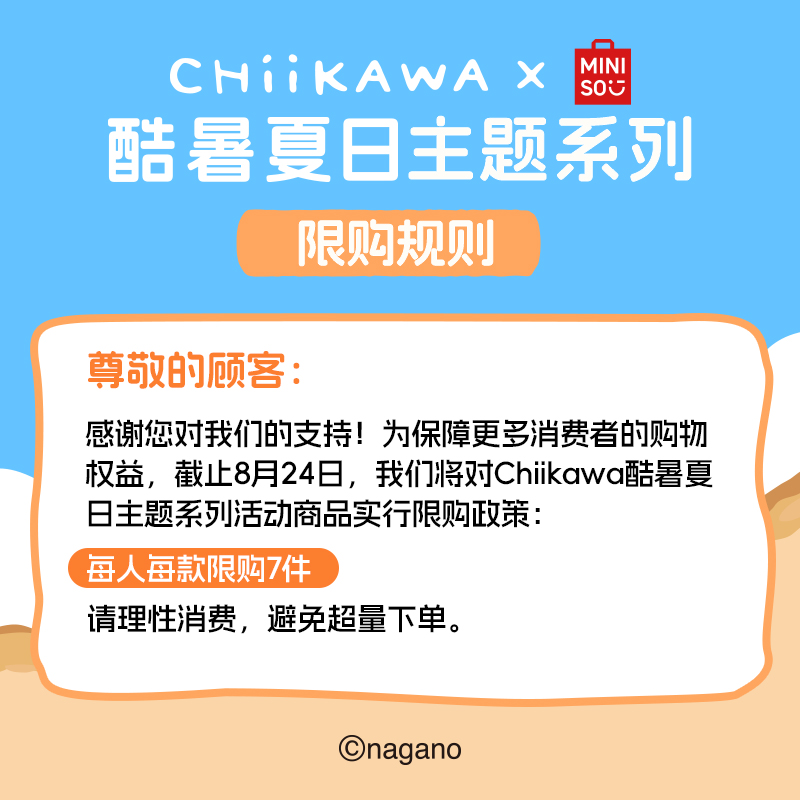 MINISO名创优品Chiikawa夏日系列排排坐摆件正品 饰礼物可爱 周边装