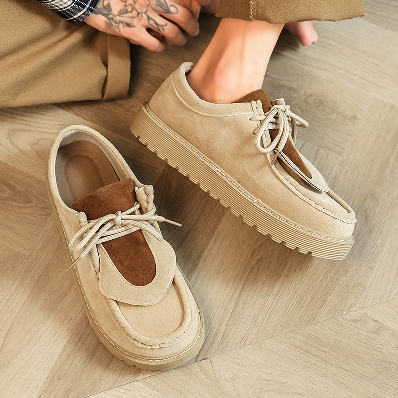 厚底单鞋 女鞋 松糕鞋 板鞋 诗歌兰2025新款 休闲运动鞋 真皮做旧小白鞋