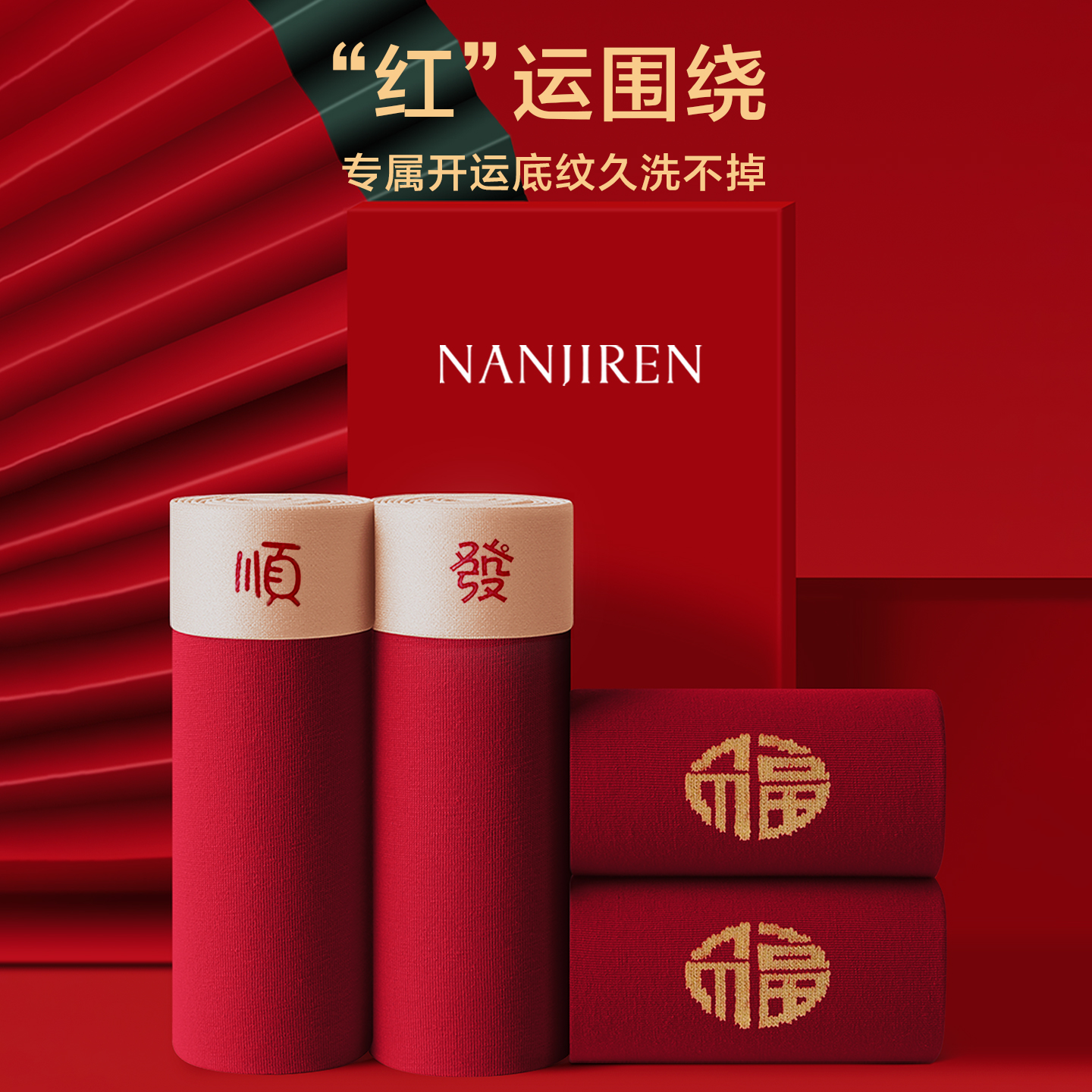 纯棉2025蛇年红色结婚礼物男生平角四角短裤 南极人本命年男士 内裤