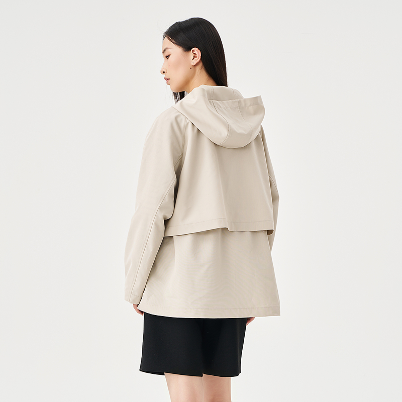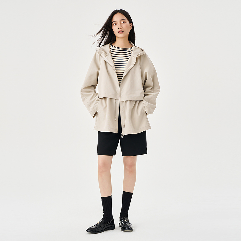 宽松休闲风衣 连帽抽带外套女中长款 OTT2025春季 新款