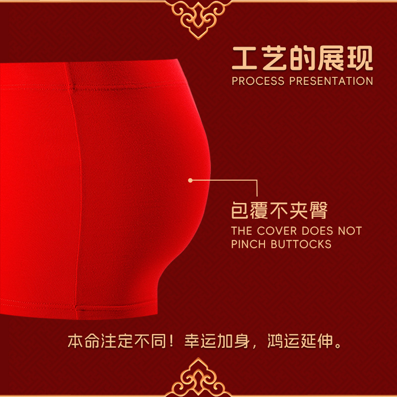 4条装 雅鹿本命年纯棉男士 衩2 舒适透气大红色四角短裤 多规格 内裤
