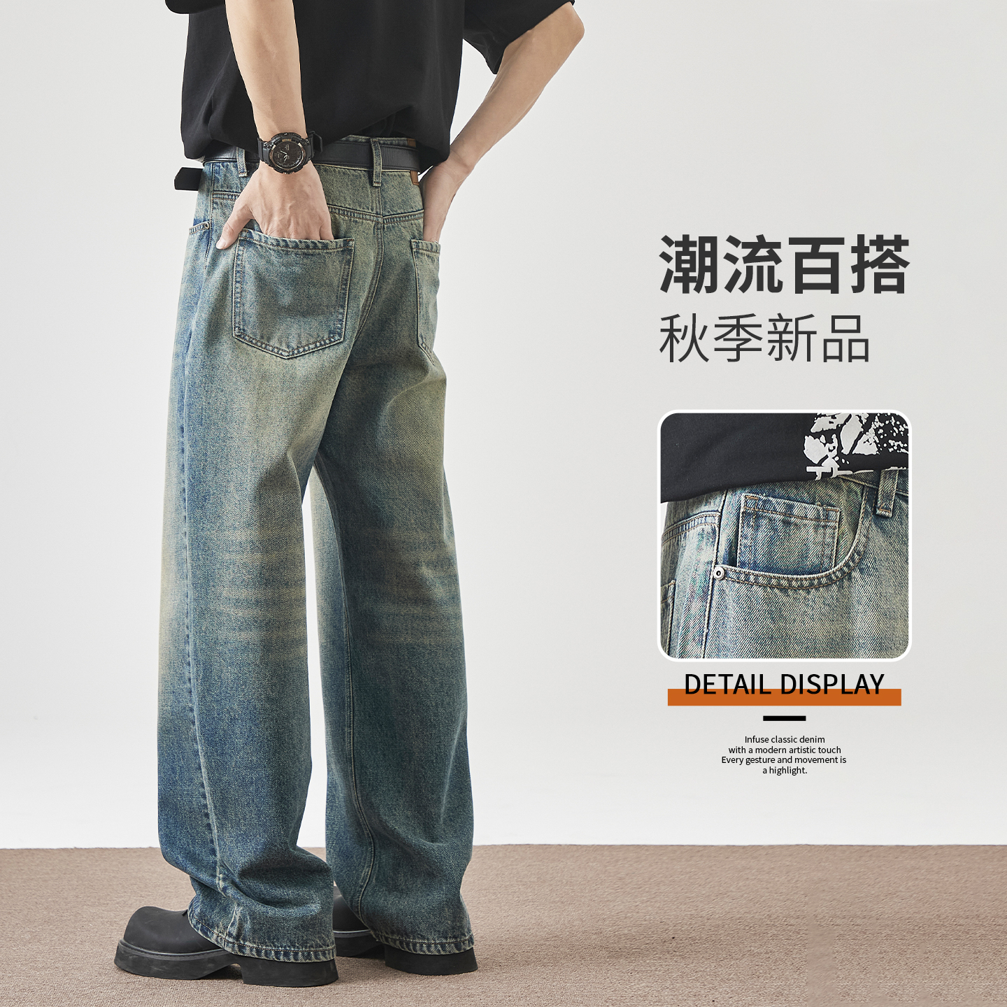 复古cleanfit牛仔裤 2025新款 男春秋季 子男款 直筒宽松阔腿长裤 美式