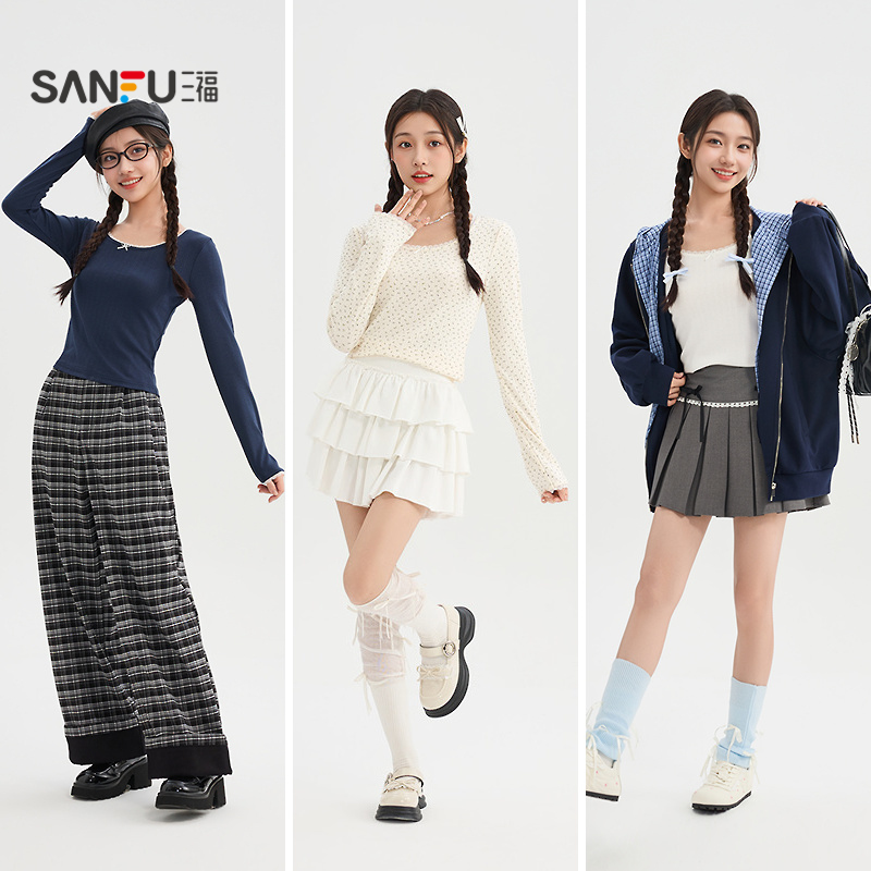 纯棉长袖 冬撞色上衣 T恤少女春秋初中高中学生外穿内搭宽松打底衫