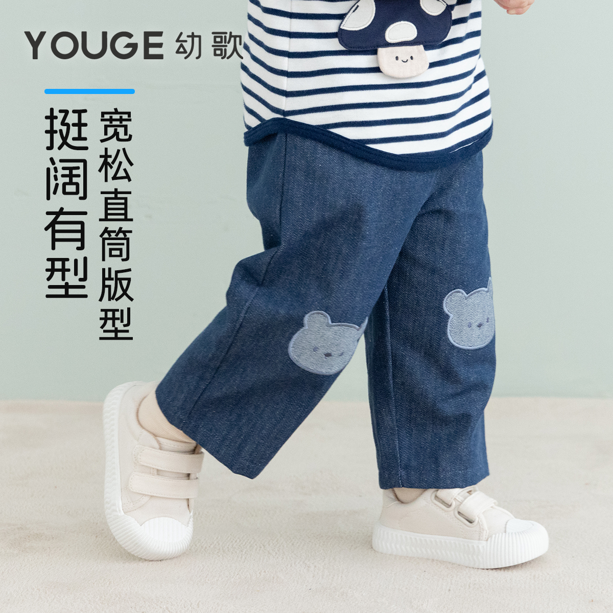 宝宝百搭纯棉长裤 YOUGE幼歌 柔软直筒复古牛仔裤 新款 潮 婴幼儿秋季