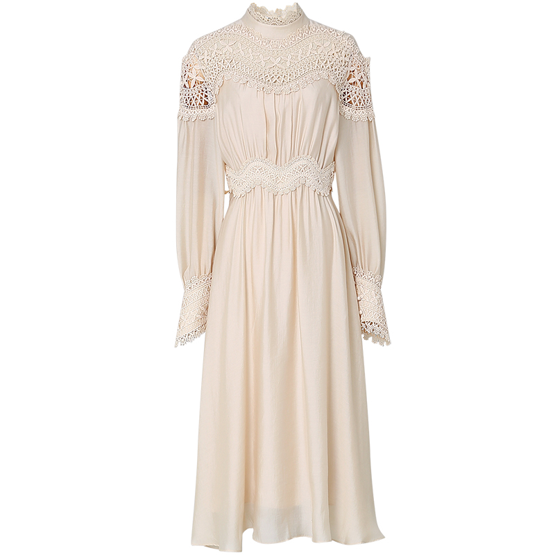 收腰白色法式 MAMC拼接格纹灯笼袖 长袖 新款 裙子 抹胸连衣裙2025秋季