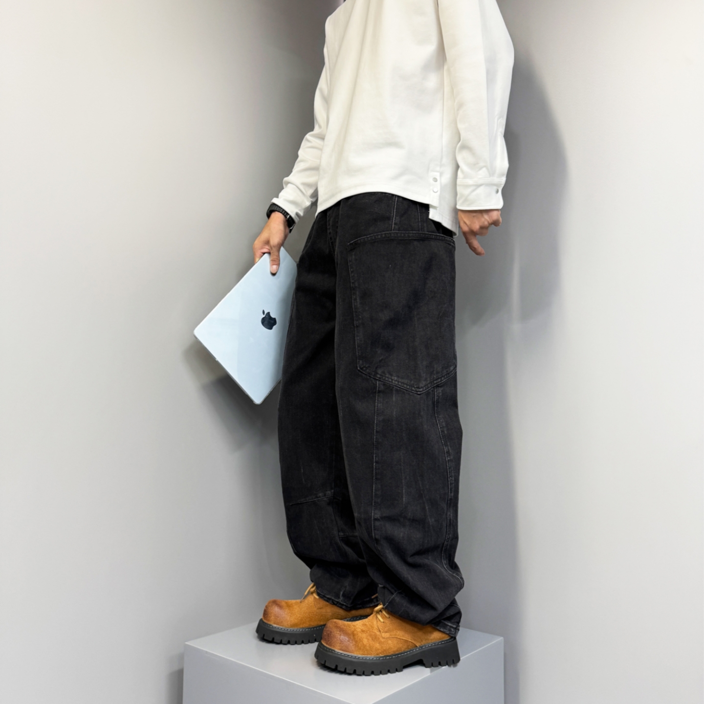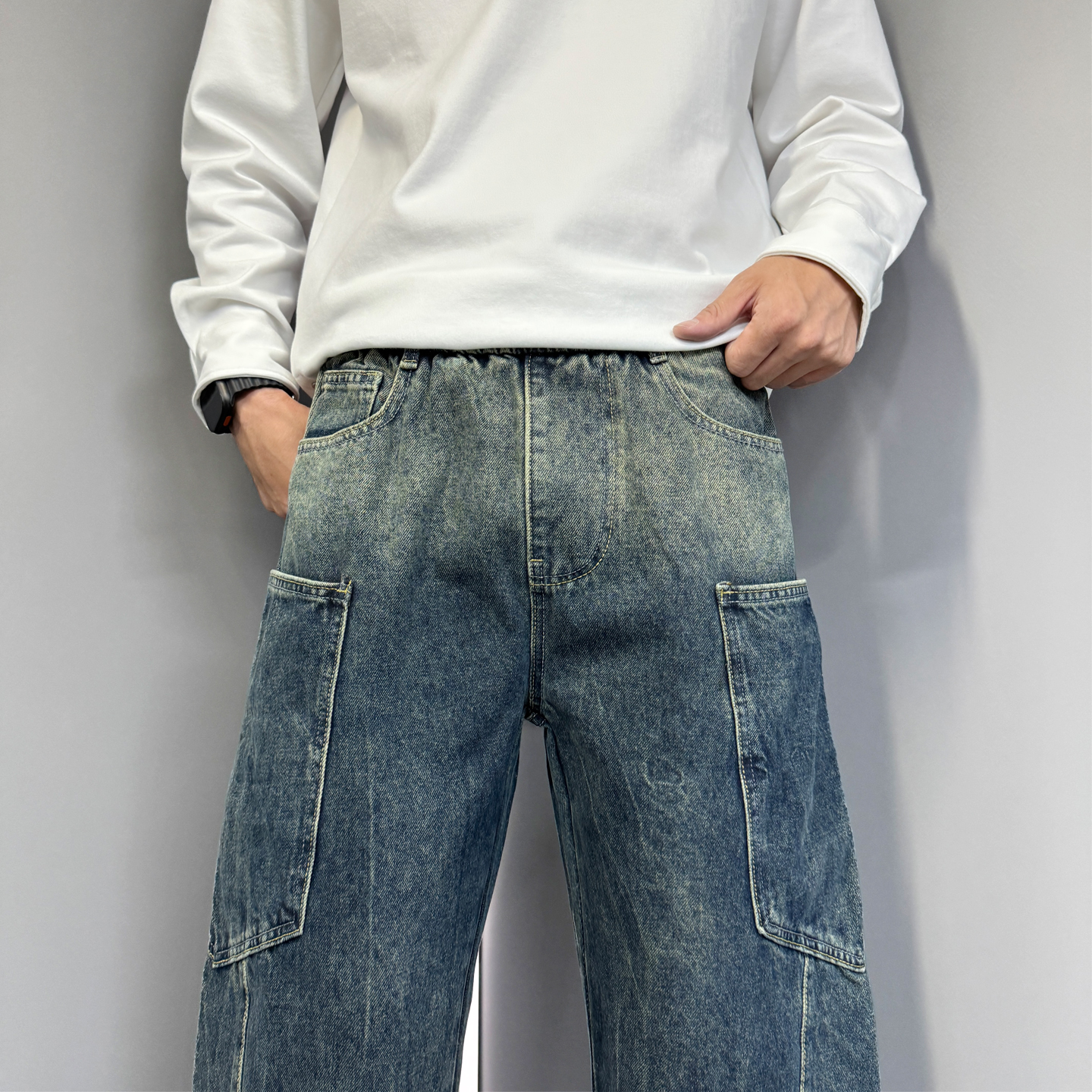 25春秋新款 牛仔裤 太平鸟男装 复古直筒水洗耐磨牛仔裤 魔塑弹